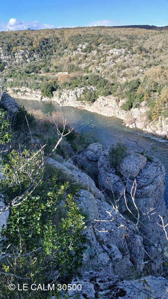 Nous étions 17 marcheurs ce jeudi matin au départ de Balazuc en Ardèche classé parmi les plus beaux villages de France et labellisé "Village de caractère" . Nous sommes partis vers le sud en laissant le village derrière nous pour aller voir les rives de l’Ardèche en passant par un sentier qui serpentait au milieu d'une végétation aux couleurs automnales mais qui laissait entrevoir un magnifique paysage sur la rivière . Après une brève halte nous voilà repartis vers le domaine des Louanes ; joli hameau restauré que nous contournons pour reprendre notre progression en direction de Balazuc. Une pose repas bien méritée s'est imposée en haut du sentier très accidenté. Le soleil a joué à cache cache avec les nuages puis un petit vent froid nous a obligé de pique niquer plus vite que prévu. Nous somme repartis en direction de la corniche du village par une draille escarpée pour arriver sur un petit plateau rocheux qui surplombe les gorges de l'Ardèche avec ses magnifiques méandres . Arrivé à Balazuc nous avons visité ses superbes ruelles médiévales avec ses monuments d'époque.
