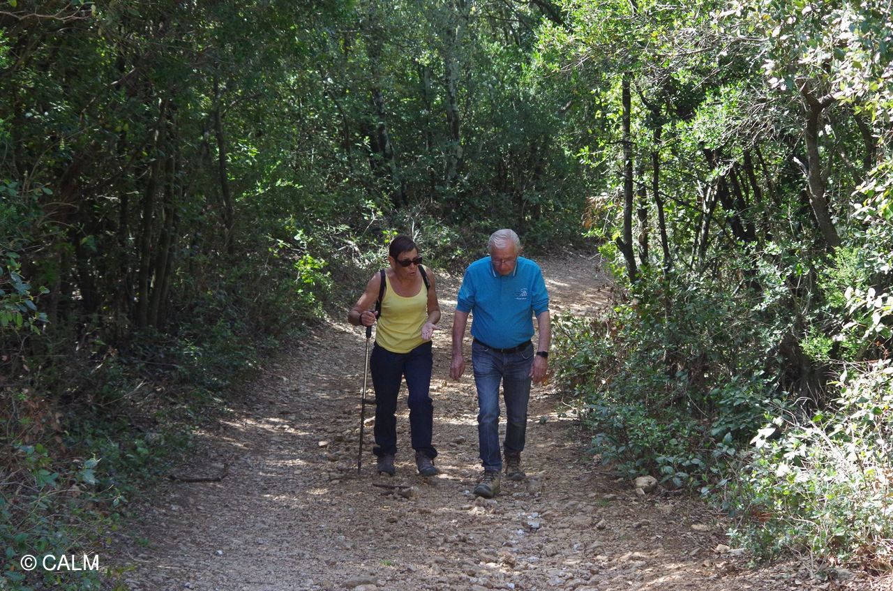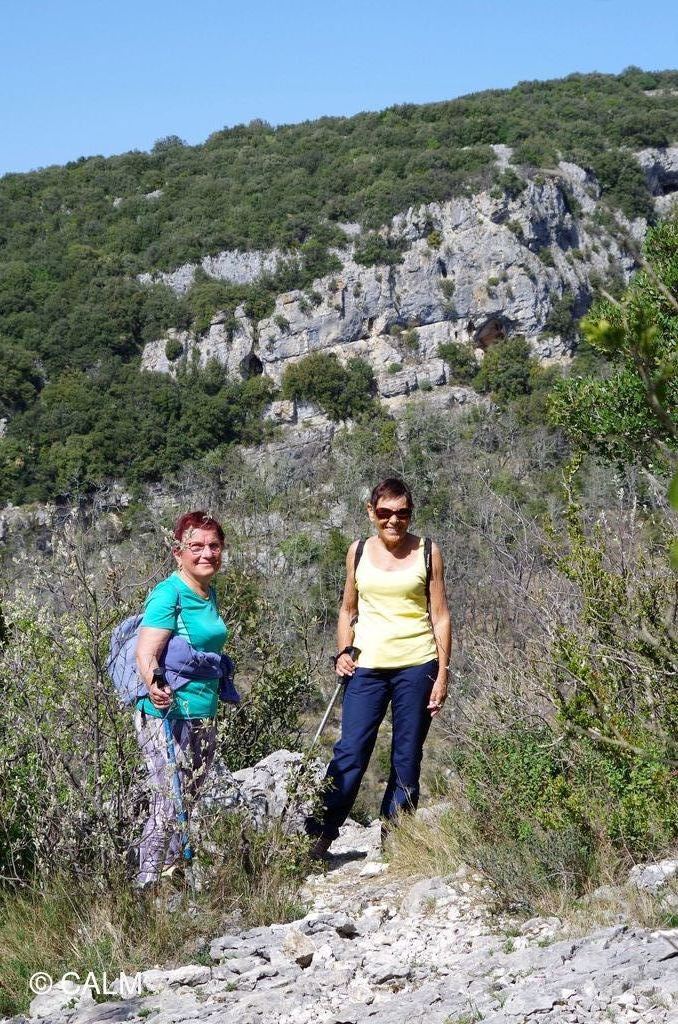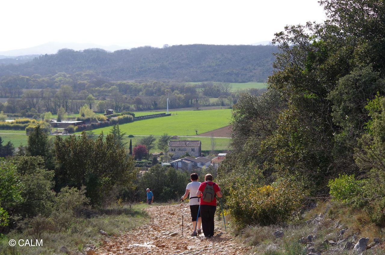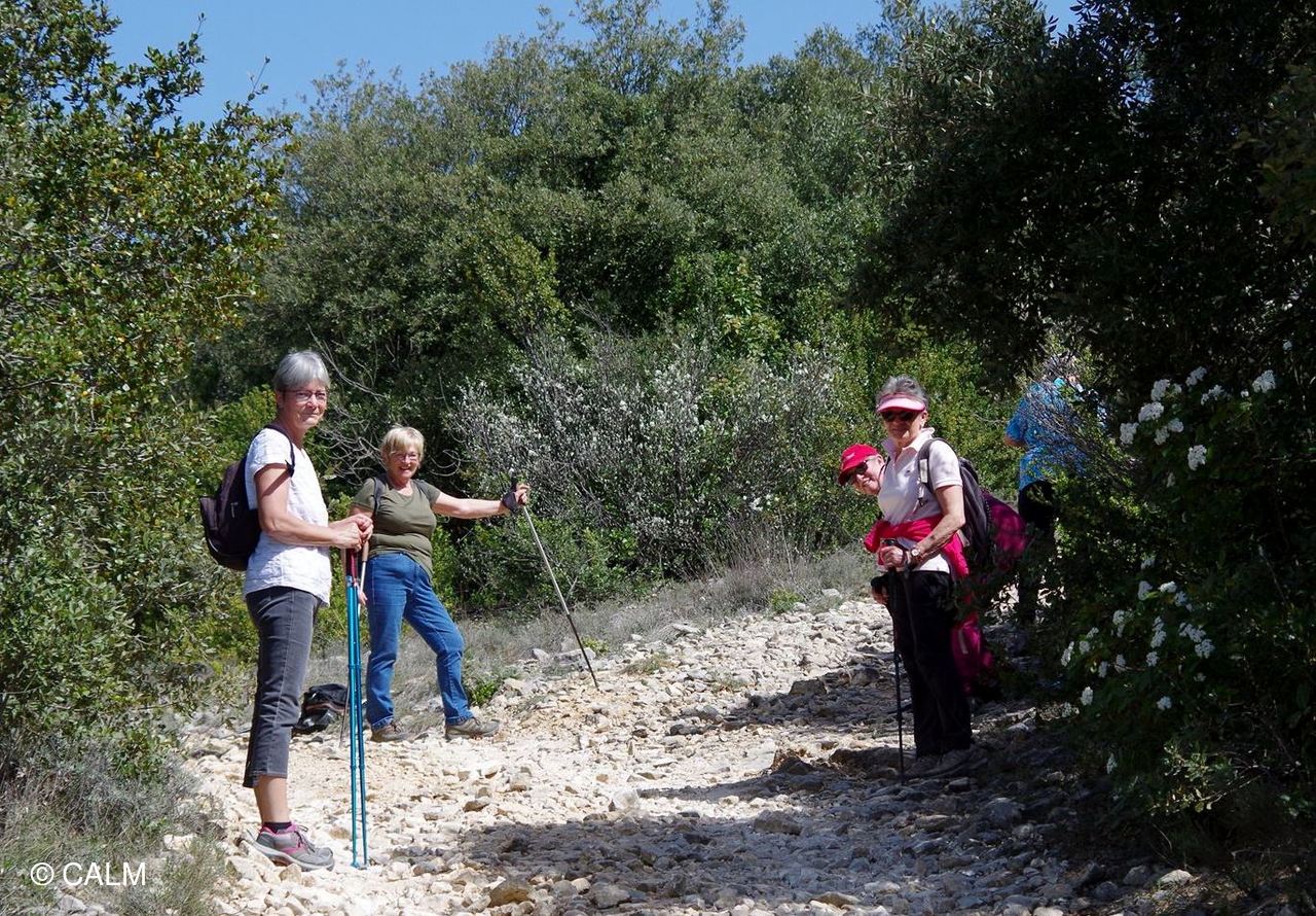 Nous partons du petit hameau du Cal sous un ciel bleu resplendissant et attaquons au départ par le lit de la rivière asséchée. Puis nous continuons notre bonhomme de chemin à travers bois, la montée est longue et le dénivelé de 260m se fait bien sentir dans les mollets. Les fleurs de printemps sont toujours là et égayent notre parcours. En hauteur nous pouvons apercevoir le château d'Allègre ou Castrum ainsi que la chapelle. La plus grosse partie du chemin est en pente douce mais, les cinq cents derniers mètres sont particulièrement pentus.