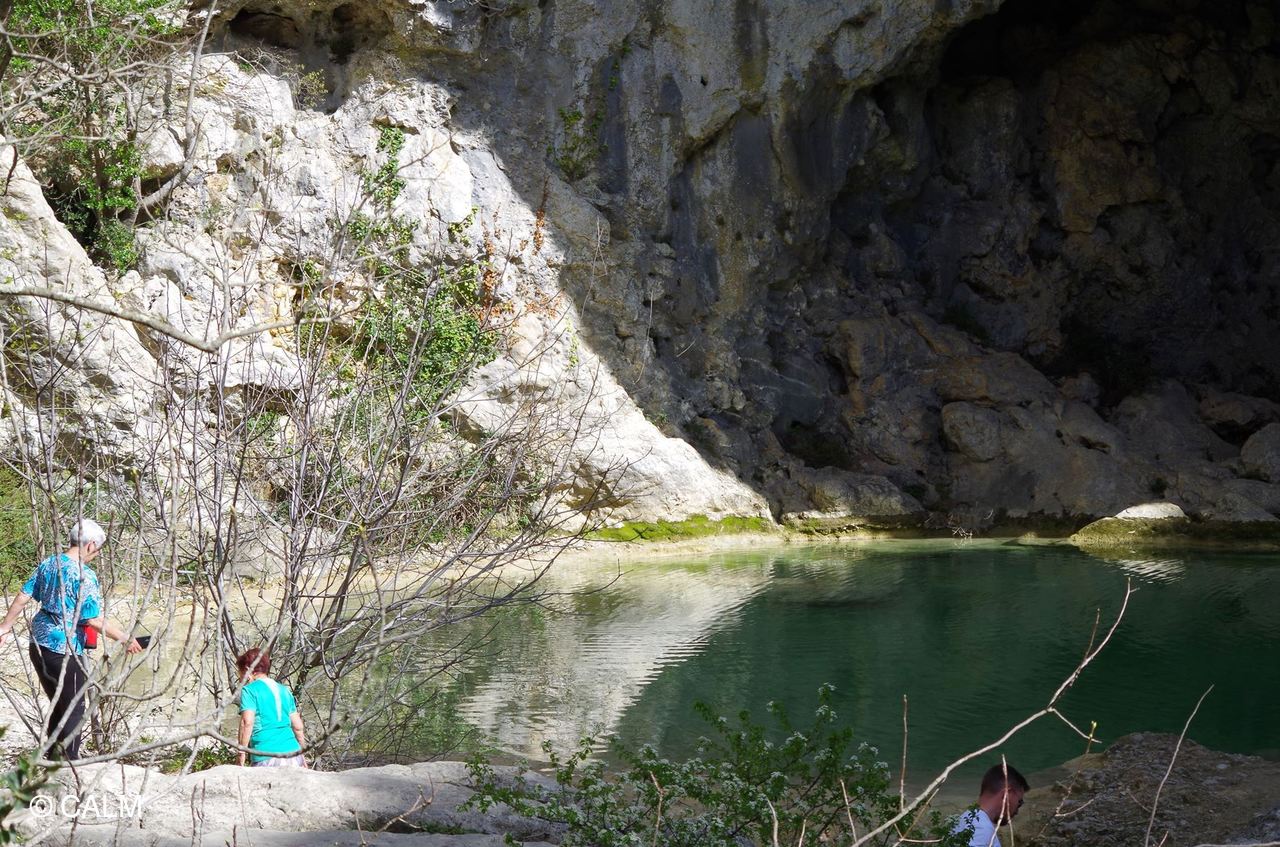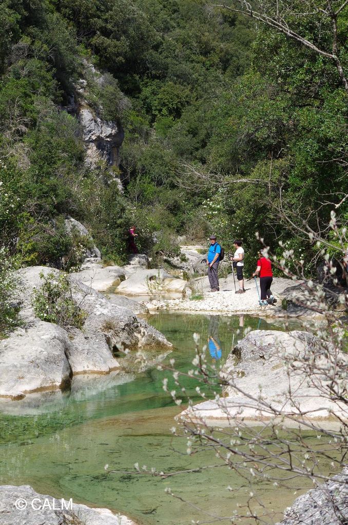 La rivière de Séguissous d’une eau transparente à faire rêver se mêle à la garrigue. Mais, quel point de vue magnifique, c’est presque un parc d’attractions aquatique naturel, les eaux claires s’écoulent lentement entre cascades et vasques naturelles. Nous sommes si près du but .