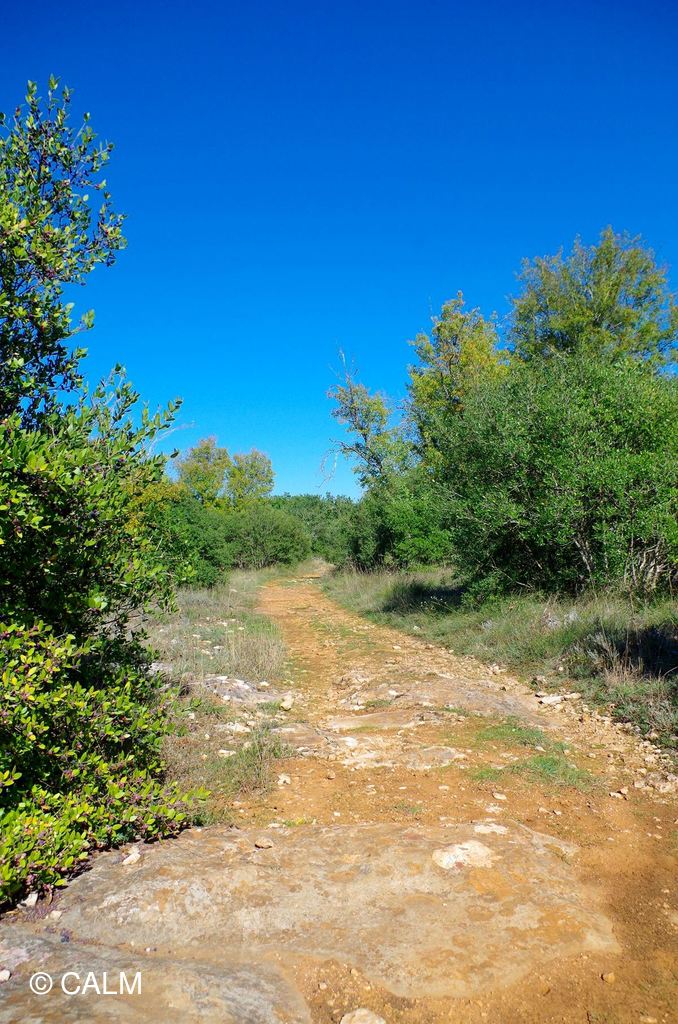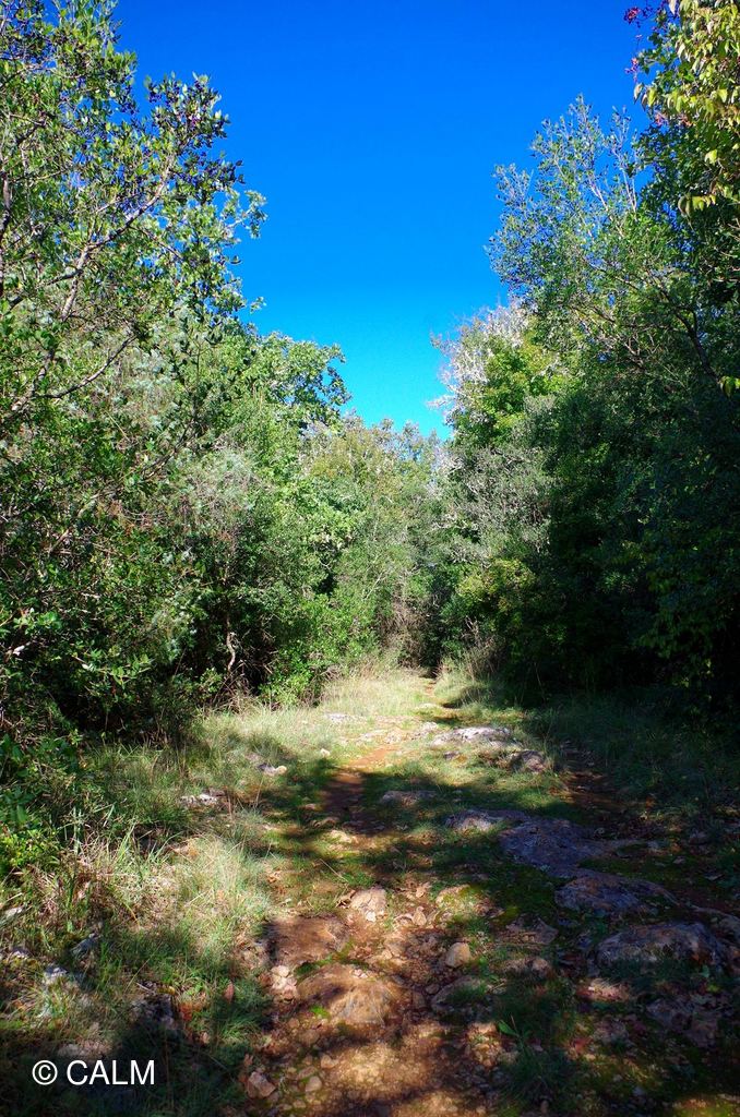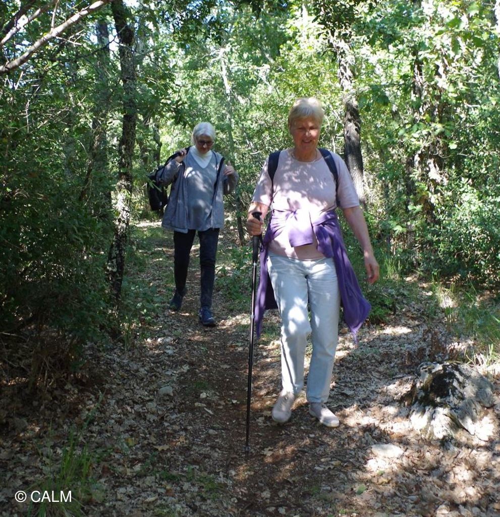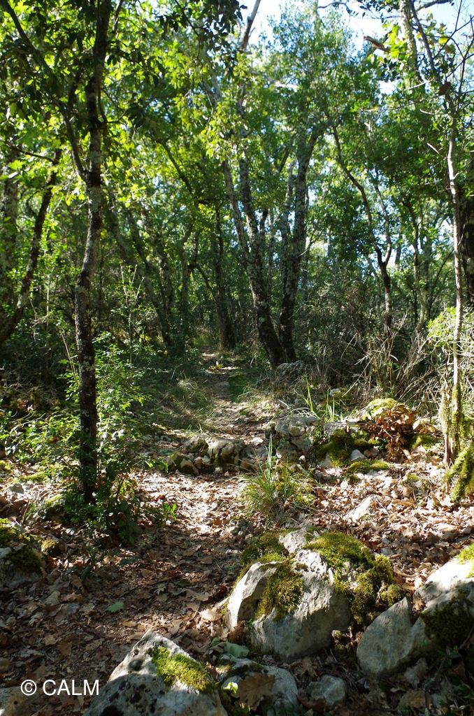 Le chemin est étroit et jonchés de pierres, mais la balade est ombragée et agréable.
