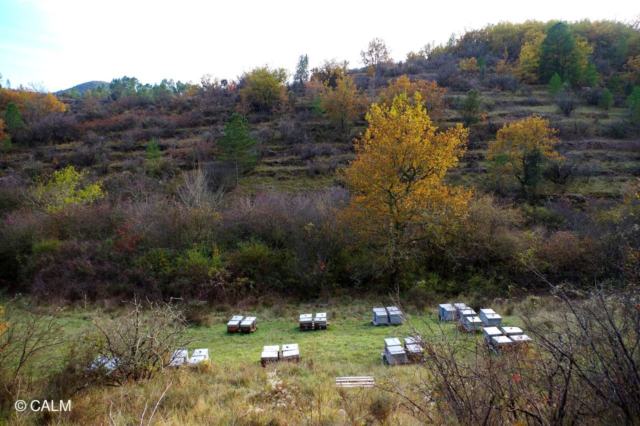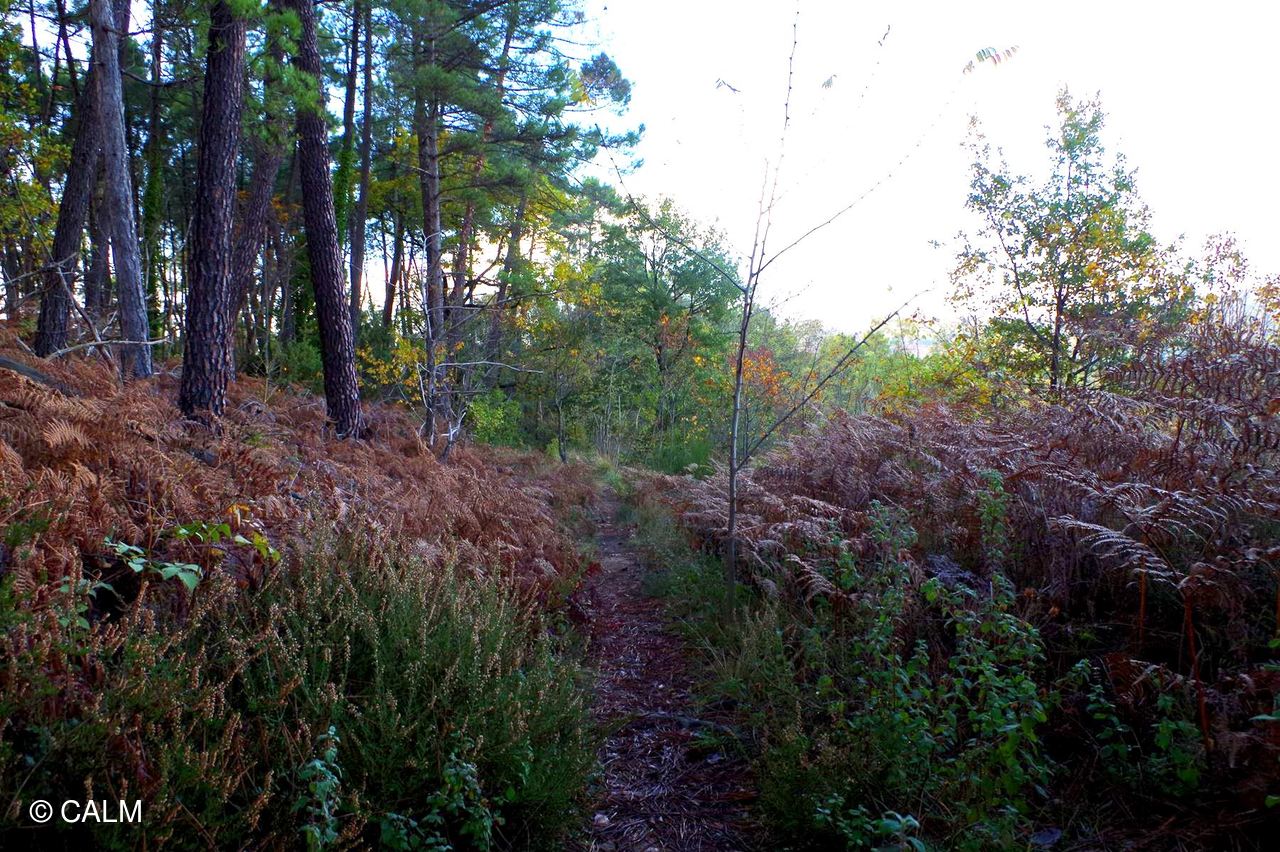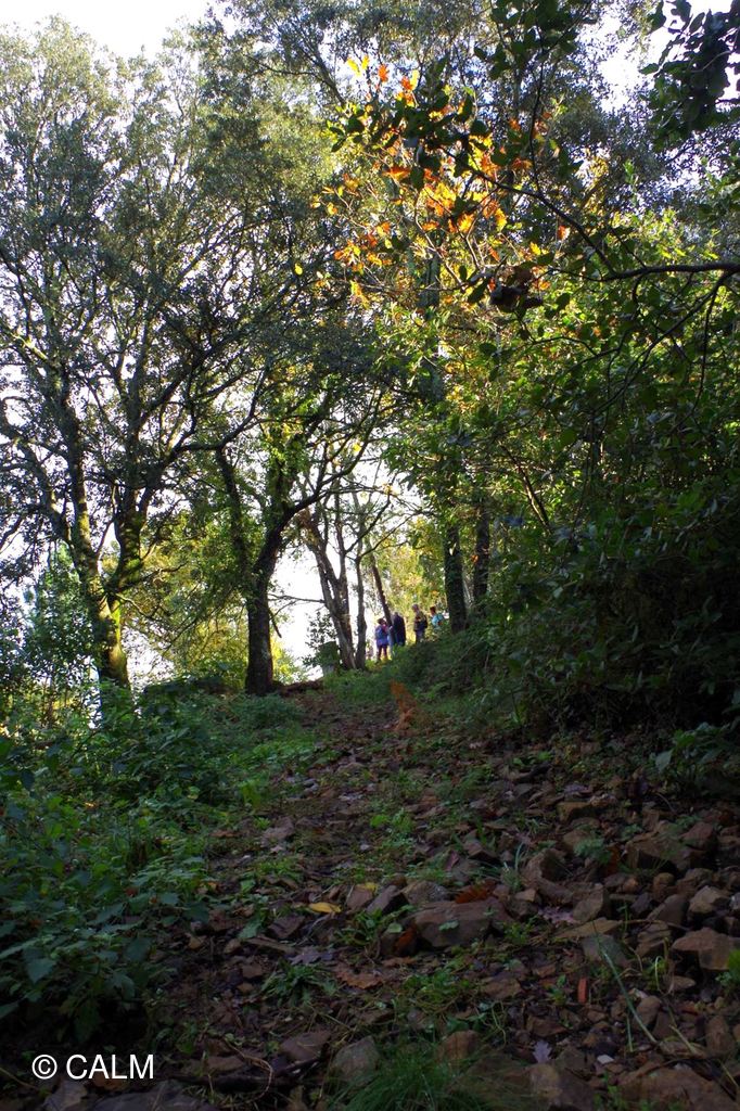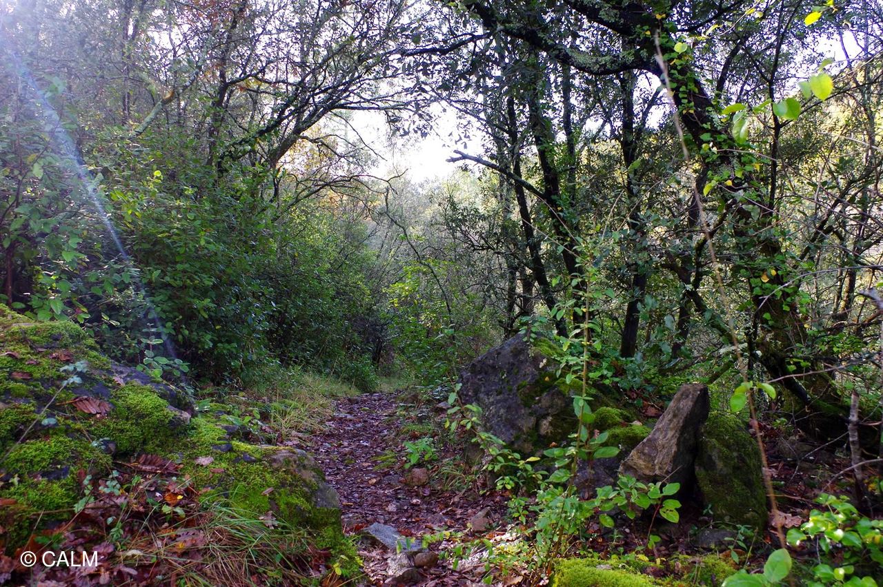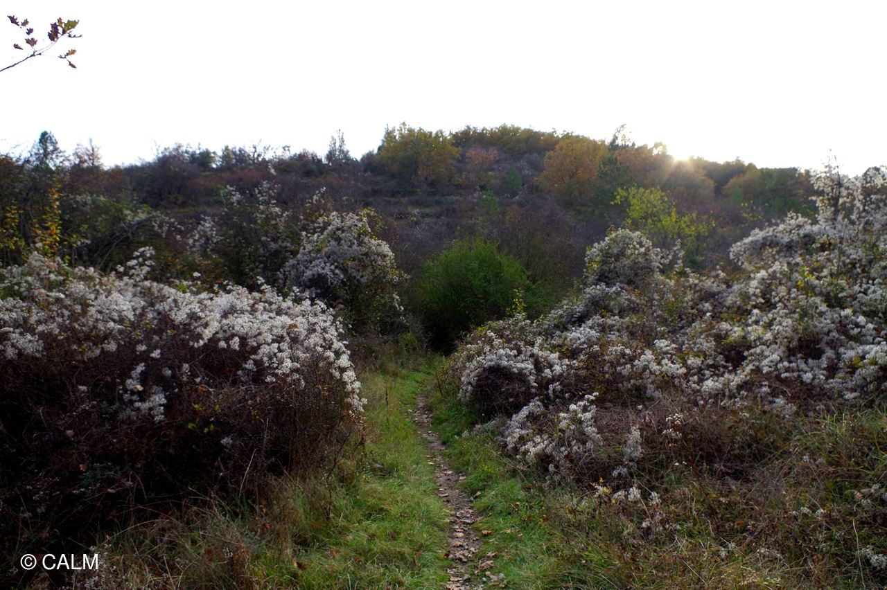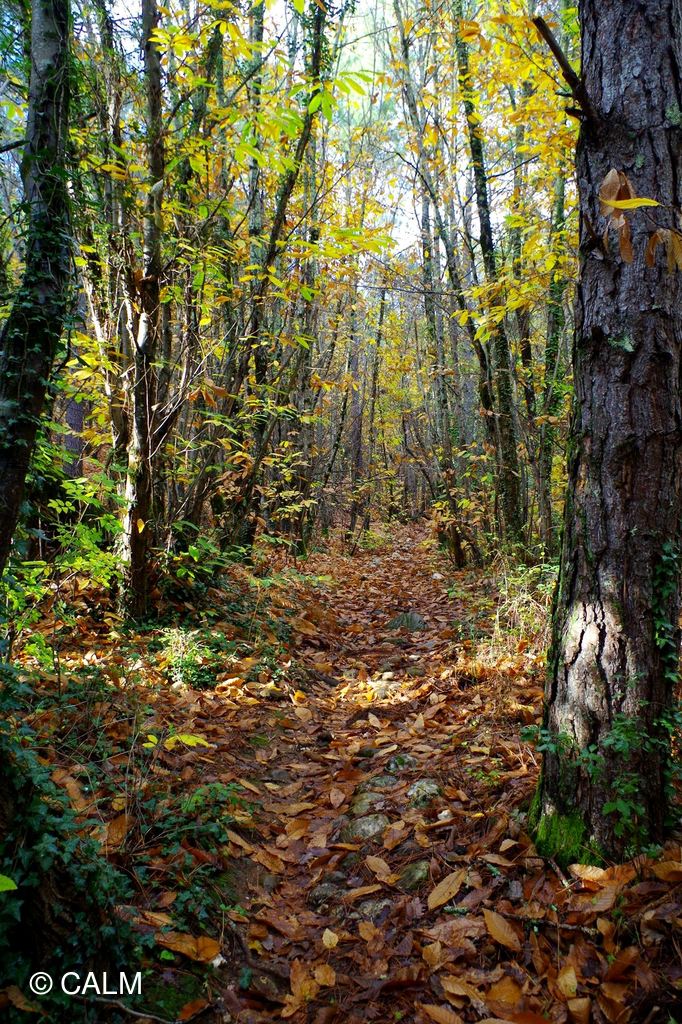 Quelques arbres encombrent le chemin en direction du poteau Grottes aux crânes.
