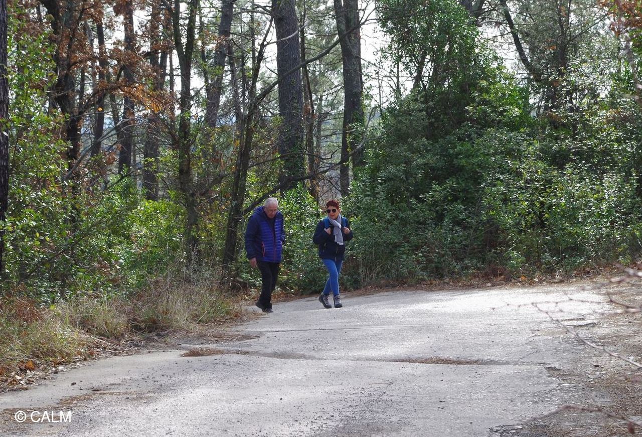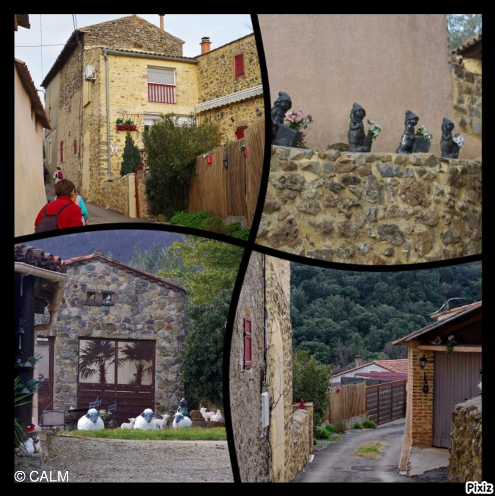En sortie de la route forestière de Banassas nous nous dirigeons vers Les Pastrous quelques trouées dans les arbres nous laissent entrevoir le paysage sur les villages et à la sortie du Domaine de Rouvergue nous prenons un petit sentier qui semble enlacé par la végétation sombre. Le village de Larnac, est tout endormi et seules les oies font du bruit à notre passage, les premières maisons arborent des statuettes de nains et de moutons.
