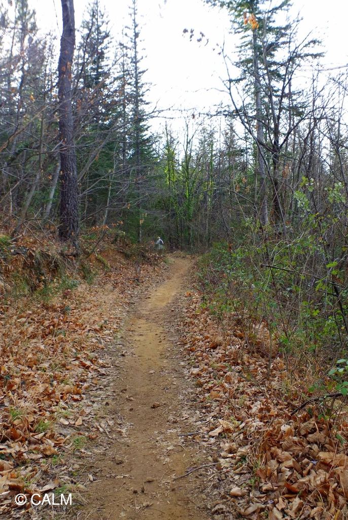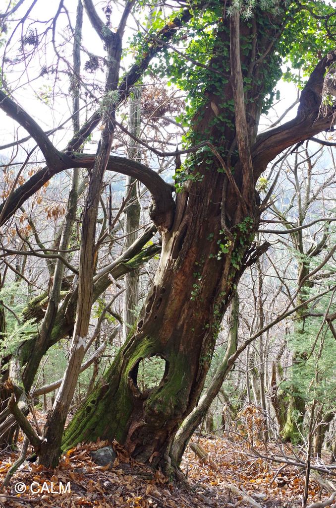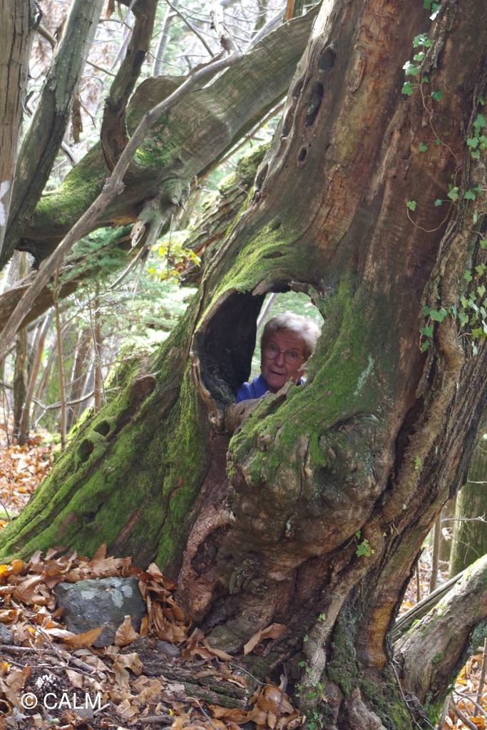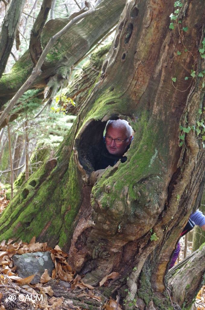 La suite du sentier se fait entourée d'arbres majestueux et pour certains, creux jusqu'à la cîme, mais toujours debout.