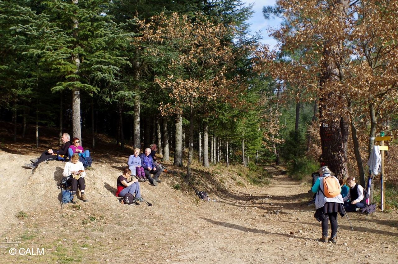 Nous arrivons à l'heure de la pause au niveau du poteau du Mas Neuf. Au soleil nous prenons le temps pour grignoter et reprendre un peu de force.
