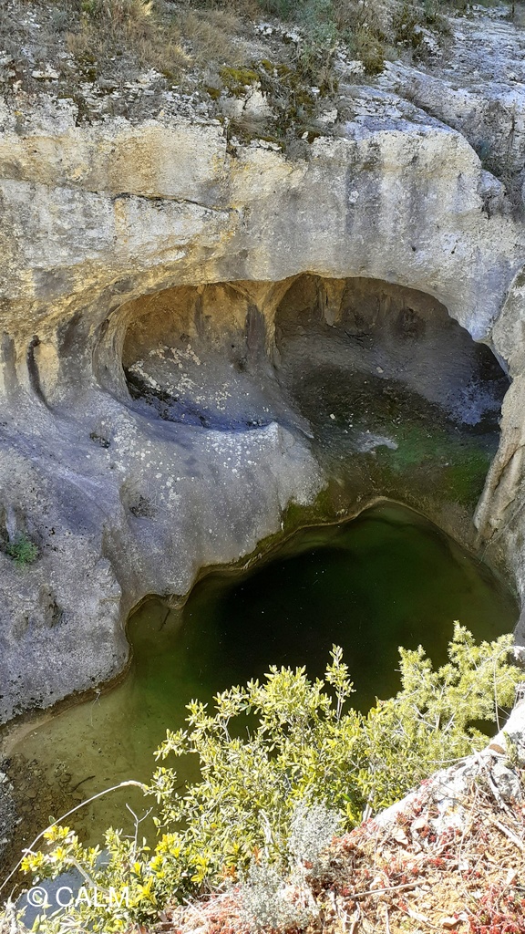 Puis nous repartons, et arrivons au pied du Gour de la Sompe, un site spectaculaire et magnifique, qui malheureusement manque un peu d'eau, mais magique tout de même.