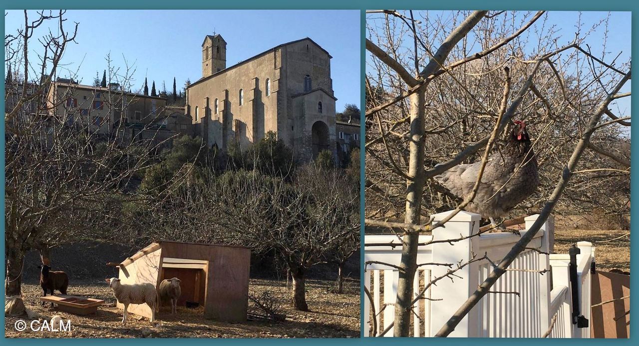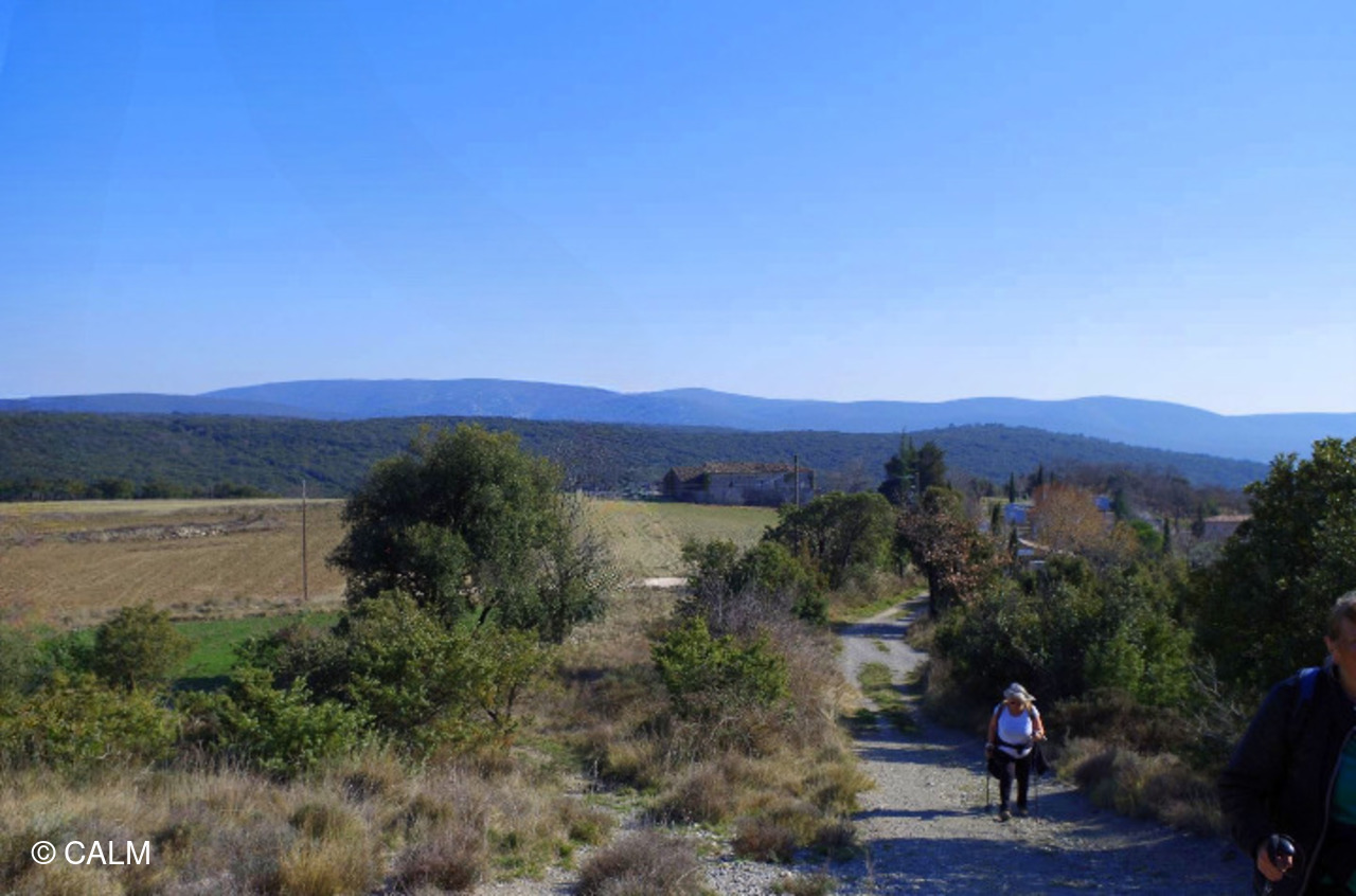 Nous montons par un chemin qui nous mène à la Chapelle de Notre-Dame dont les branches du cèdre de l'Atlas, l'entourent d'un écrin de verdure. Nous nous enfonçons maintenant dans le coeur de la forêt du bois d'Ajude. La végétation est dense et nous évoluons sur le sentier botanique large mais empierrė.