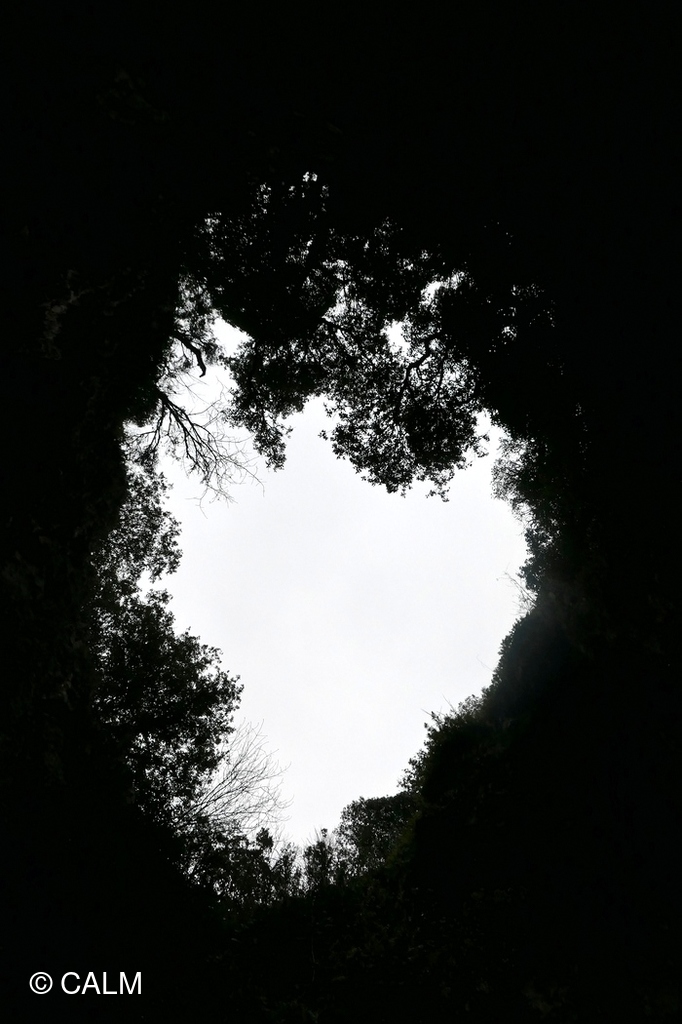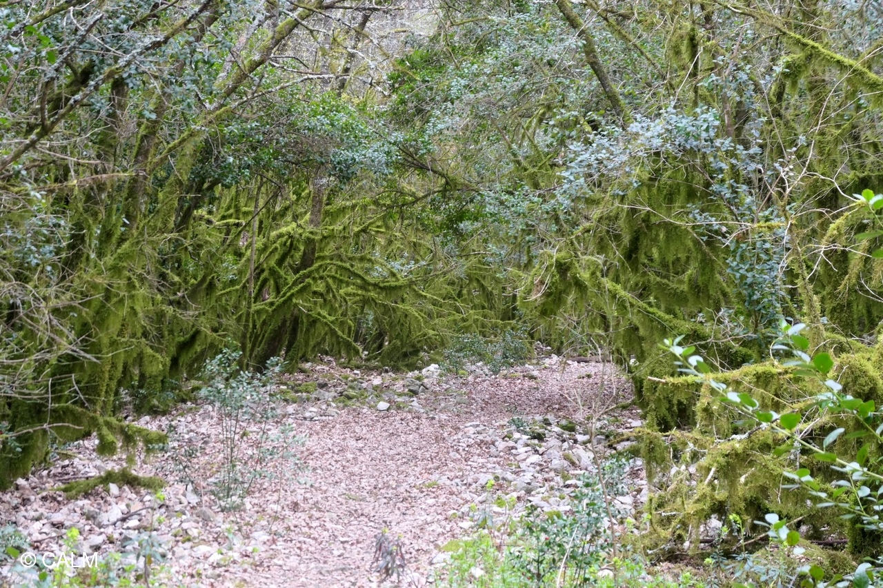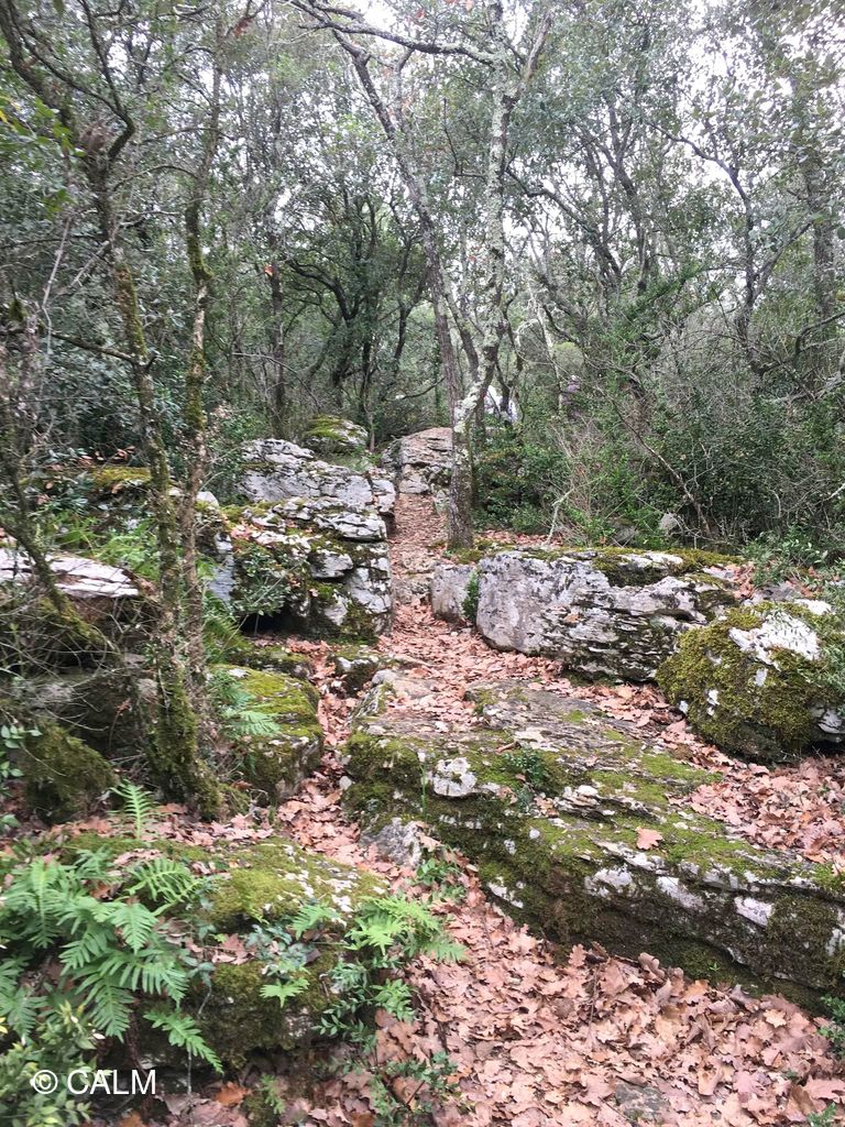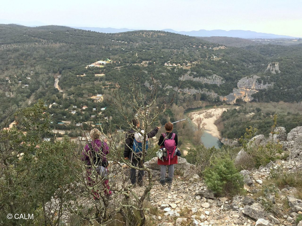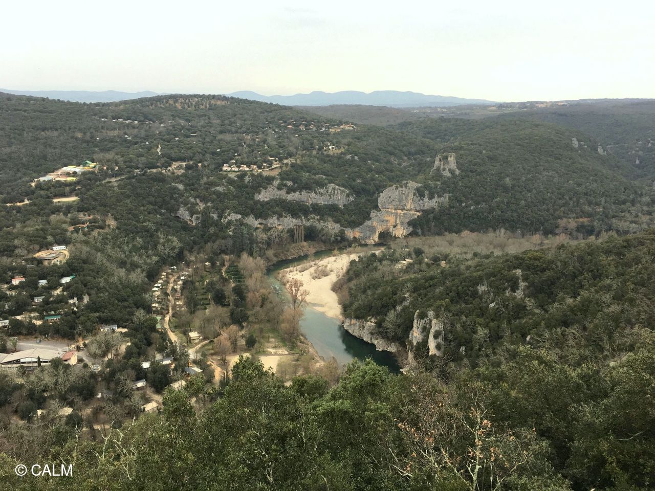 En passant, le plus souvent, par de jolis petits sentiers bordés d'arbres couverts de mousse ou de lichen qui nous ont conduit de la grotte aven de Peyre Haute, au lac de Carquignan, puis à la superbe grotte Claire sans parler des multiples dolmens. Pour finir, après avoir explorer la grotte du roc de l'aigle, retour par un sentier avec vue sur les ruines du château de Ferreyrolles et en contre bas les méandres de la Cèze.