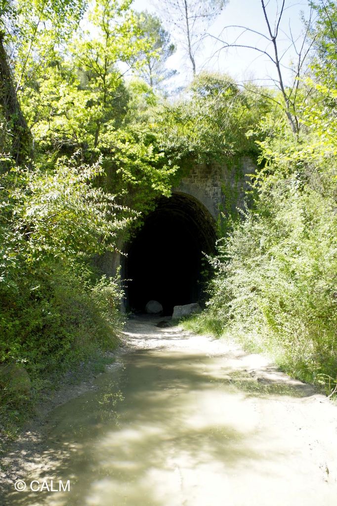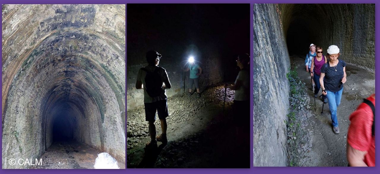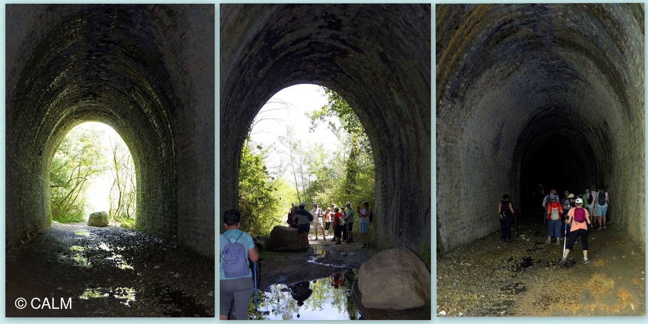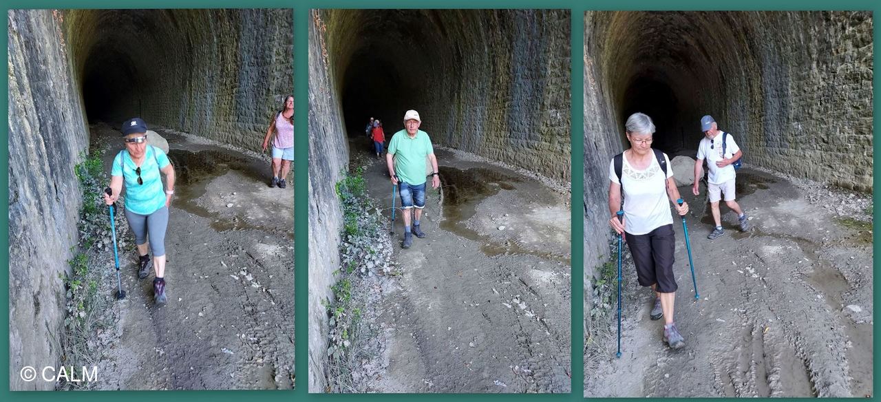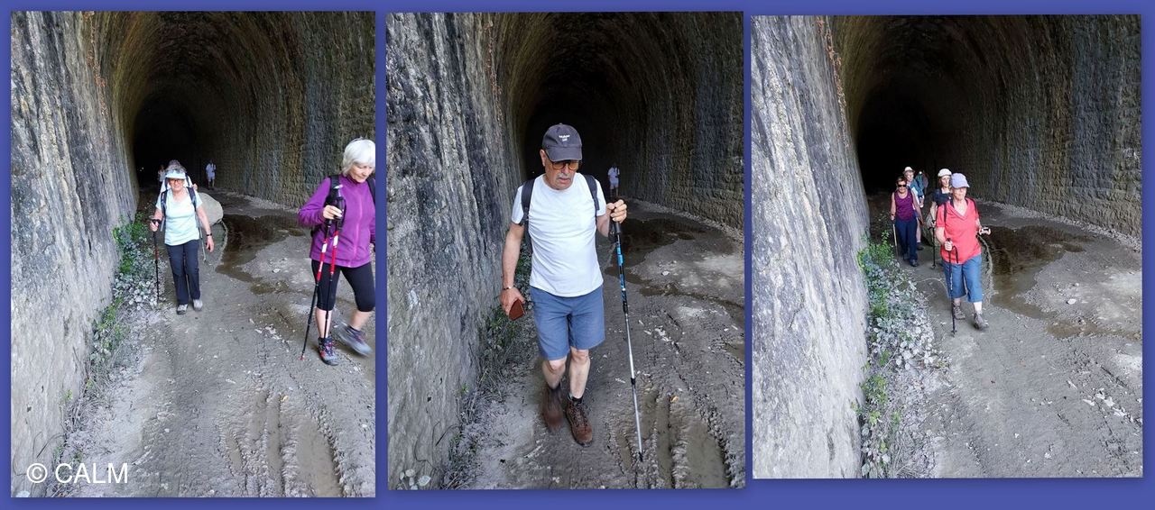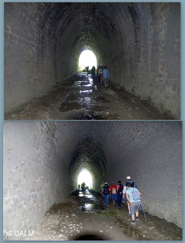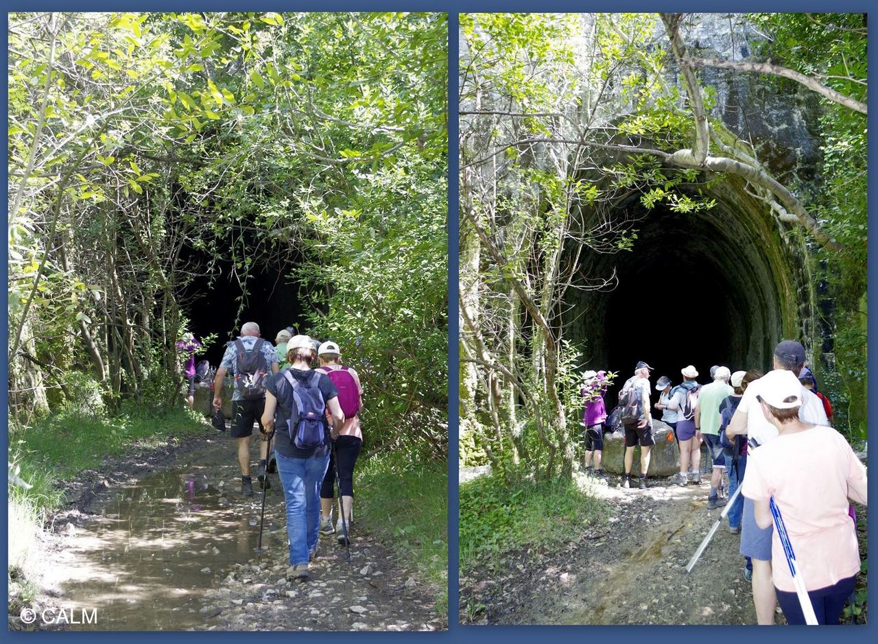 15 marcheurs légèrement vêtus emboitent le pas de notre guide du jour, en direction de la vieille citée en passant par l'incontournable tunnel de Célas désafecté d'une longueur de 391m il ne comportait qu'une voie. et reliait le Martinet à Beaucaire.