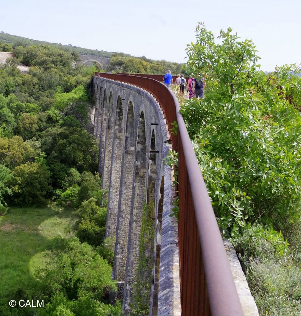 Après une grimpouillette nous voici arrivés au but de notre balade, l'édifice surplombe la vallée du haut de ses 25m et de sa longueur de 80m, ses 7 arches en font un magnifique pont, ancienne voie ferrée, il est situé à proximité du viaduc des Troubadours. Nous le traversons pour passer ensuite sous une enfilade d'arches. C'est en 1840 que fut ouverte cette ligne rejoignant Tarascon aux mines du Martinet cette petite ligne comme bien d’autres ne survécut pas au déclin du charbon Cévenol.