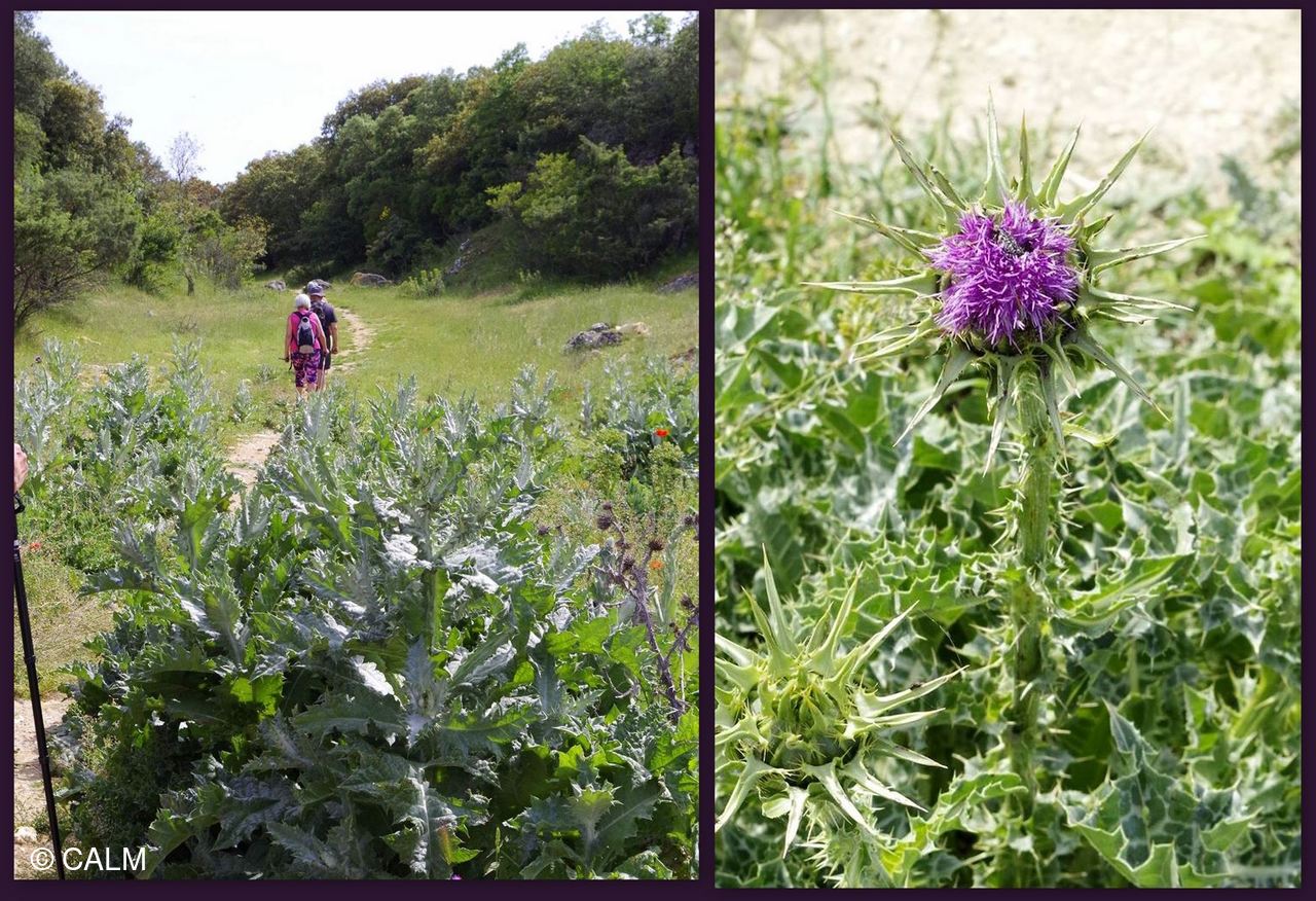 Après être passés au dessus d'un troupeau de chêvres Caprines aux longues cornes courbées, nous arrivons dans un champ de chardons étonnant, plus loin nous ferons notre pause, bien à l'ombre.
