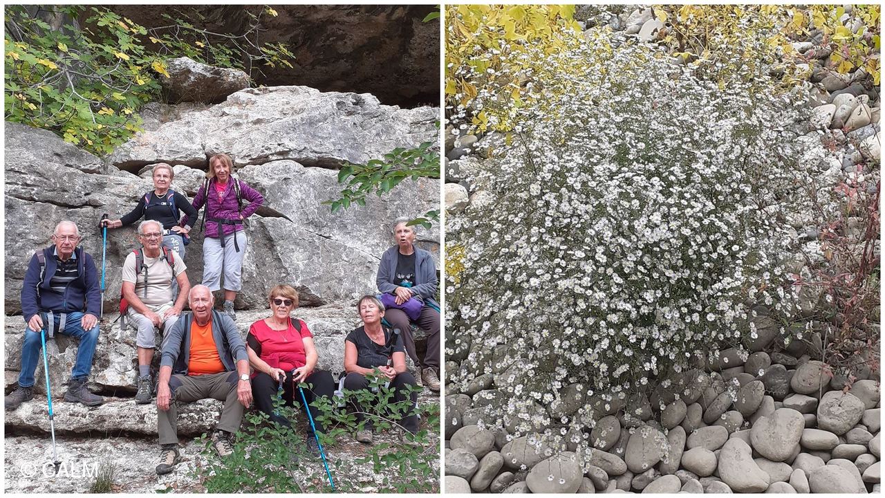 Après un repas pris au bord des Gorges nous avons gravi une bonne montée qui serpente pour ramener le groupe à nouveau par la route au hameau des Crottes