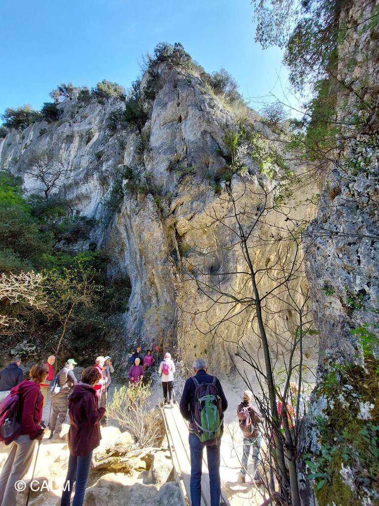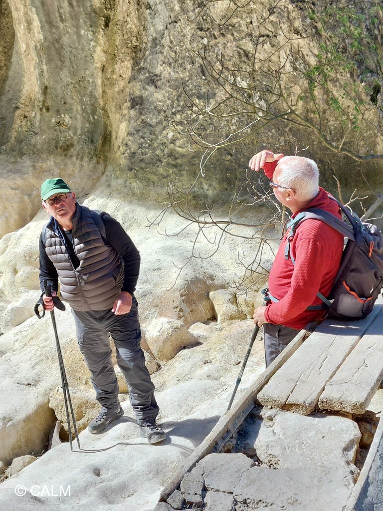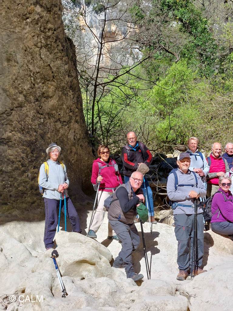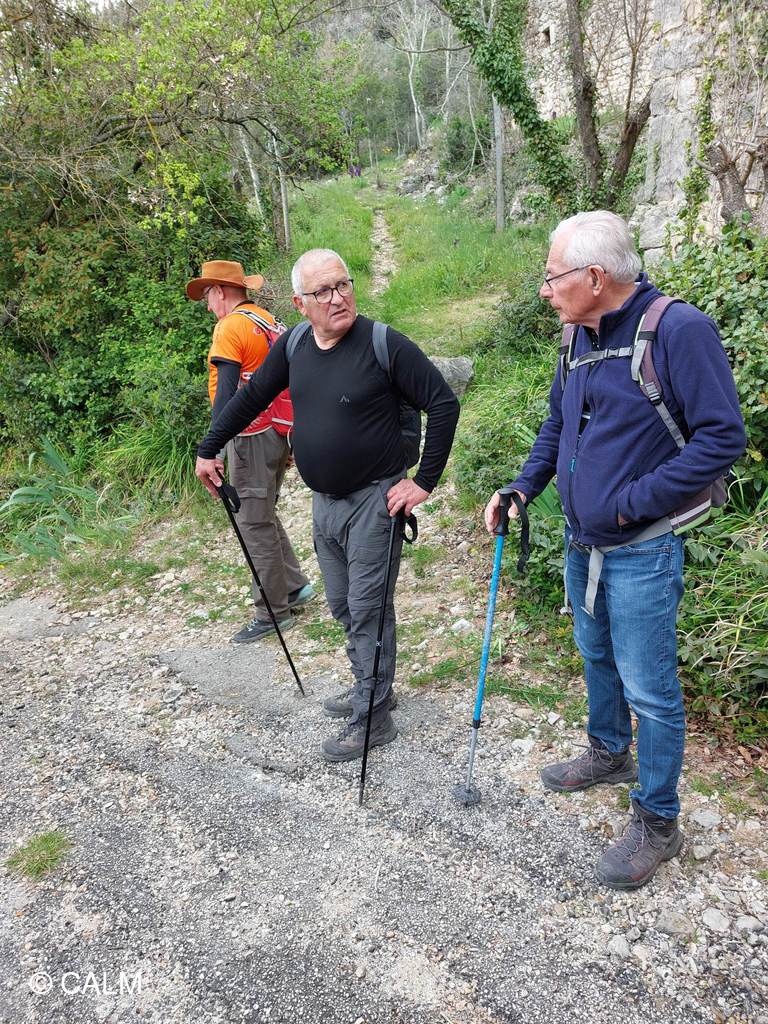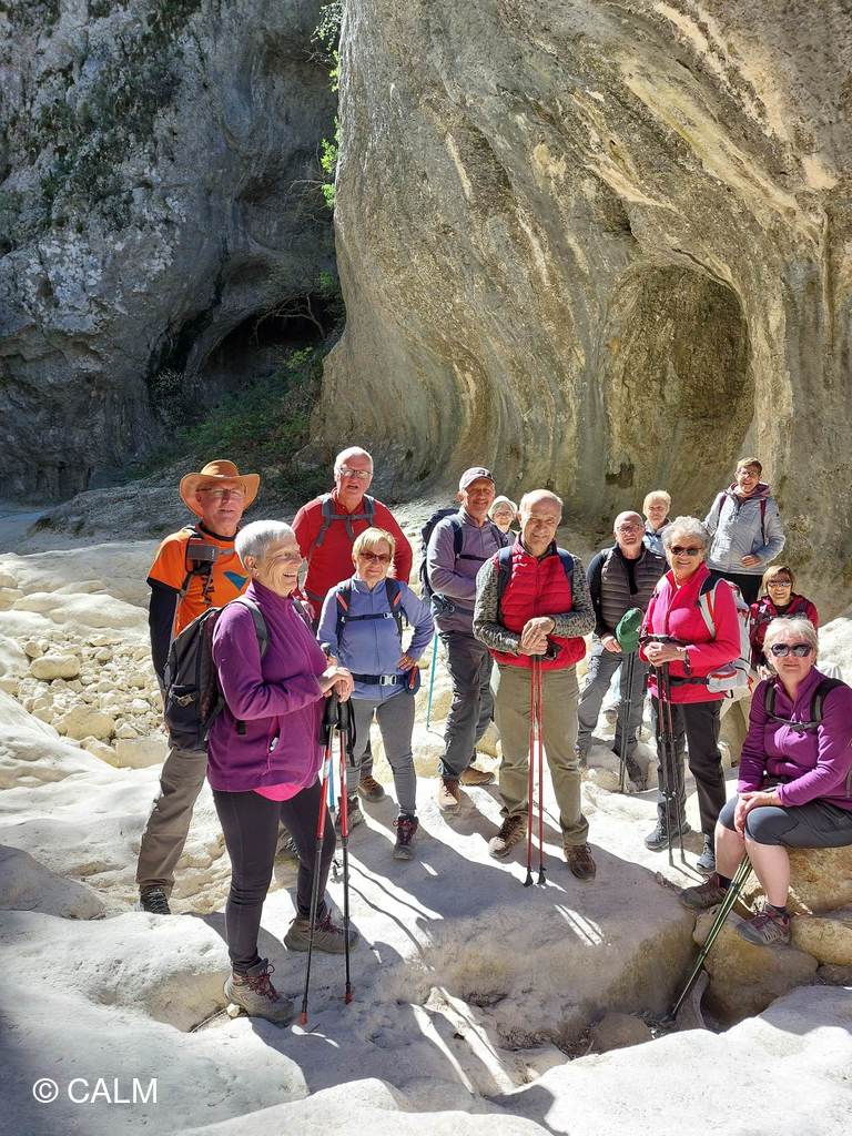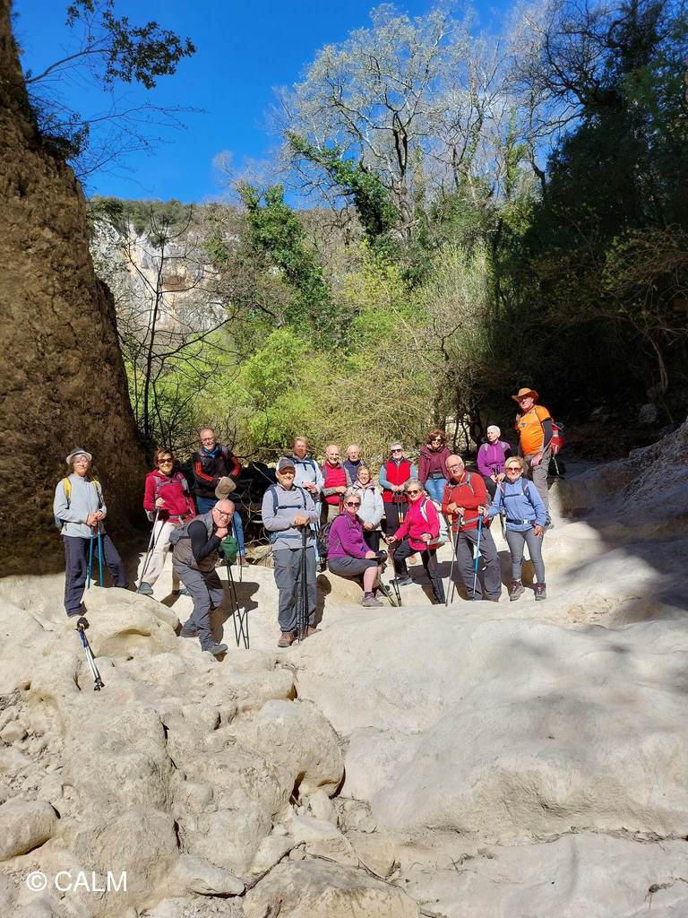 Nous étions 18 randonneurs ce jeudi 13-04 pour une rando de 11km sur le site des Concluses de Lussan. Vers 10h nous voilà partis d'un bon pied en descendant un sentier jalonné de points de vues remarquables dans un paysage grandiose. Des panneaux d'interprétation nous expliquent toutes les richesses de ce site magnifique. Arrivés en bas dans le lit à sec de l'Aiguillon nous nous trouvons face à un canyon appelé "Portail" où nous pouvons juger du long travail d'érosion creusé par ce ruisseau. Après quelques photos nous continuons notre périple en direction du menhir. Le sentier est très accidenté mais nous sommes récompensés par la vue que nous offre les gorges. Enfin vers midi nous pouvons nous restaurer au pied de la pierre plantée, magnifique monolithe de 5.5m de haut. La suite de la rando est plus paisible avec un passage près d'un mas en restauration "le roux" et le village fortifié de Lussan en toile de fond, puis sur un pont enjambant encore l'Aiguillon prés du moulin de Prade, nous continuons le sentier avec une dernière montée pour atteindre la crête où se trouve un chemin qui nous conduit droit aux voitures.