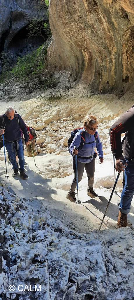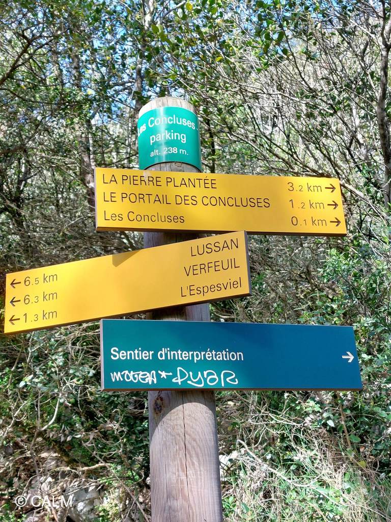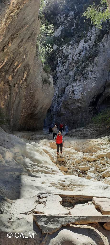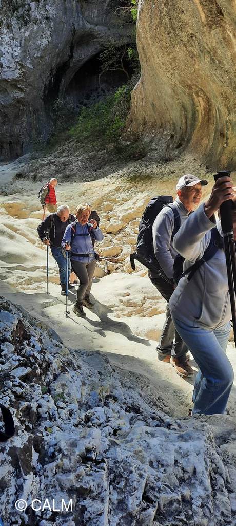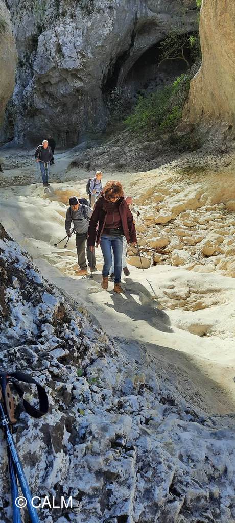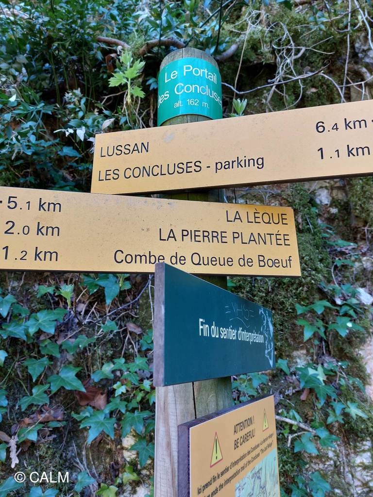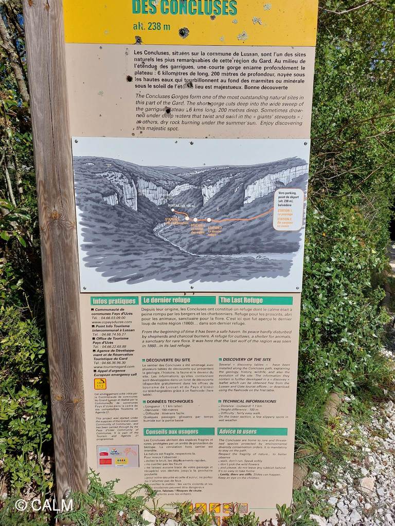 Nous étions 18 randonneurs ce jeudi 13-04 pour une rando de 11km sur le site des Concluses de Lussan. Vers 10h nous voilà partis d'un bon pied en descendant un sentier jalonné de points de vues remarquables dans un paysage grandiose. Des panneaux d'interprétation nous expliquent toutes les richesses de ce site magnifique. Arrivés en bas dans le lit à sec de l'Aiguillon nous nous trouvons face à un canyon appelé "Portail" où nous pouvons juger du long travail d'érosion creusé par ce ruisseau. Après quelques photos nous continuons notre périple en direction du menhir. Le sentier est très accidenté mais nous sommes récompensés par la vue que nous offre les gorges. Enfin vers midi nous pouvons nous restaurer au pied de la pierre plantée, magnifique monolithe de 5.5m de haut. La suite de la rando est plus paisible avec un passage près d'un mas en restauration "le roux" et le village fortifié de Lussan en toile de fond, puis sur un pont enjambant encore l'Aiguillon prés du moulin de Prade, nous continuons le sentier avec une dernière montée pour atteindre la crête où se trouve un chemin qui nous conduit droit aux voitures.