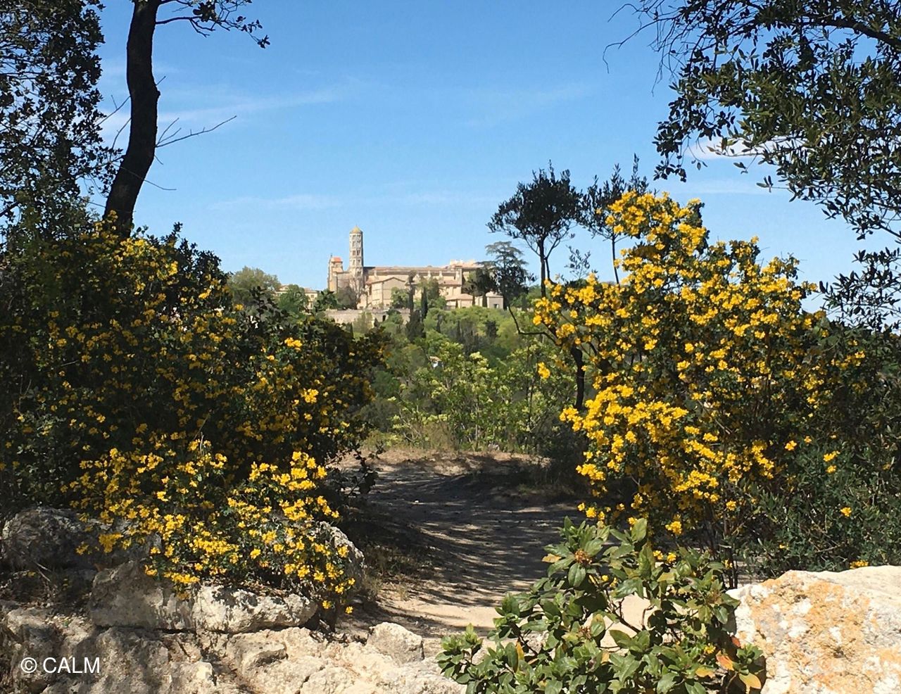 Boucle de 18km à travers les vignes qui commencent à bourgeonner, les champs de céréales certains bien verts qui ondulent sous le vent, d'autres jaunes vifs et les bois de chênes verts et de sapins en passant sur un pont romain. Une multitude de fleurs : iris, lilas, genêts, cistes...et du vent...beaucoup de vent.