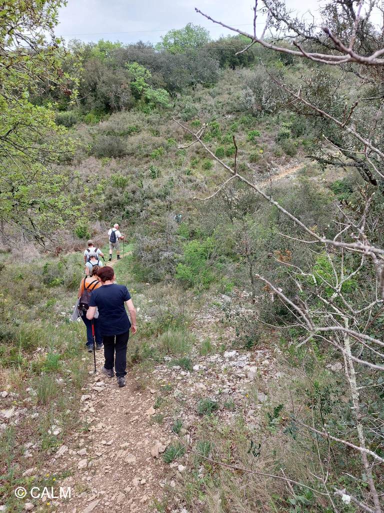 Nous partons du parking de CELAS, 18 randonneurs. Un soleil un peu voilé!!! Nous suivons pendant quelques km le chemin de la draille. Nous passons devant les fours à chaux. Nous grimpons par le sentier dans le brulis appelé chemin des amoureux !!! Le petit pont en pierre est bien abimé.. Nous voici enfin sur le chemin de la Draille. Descendons, remontons, plusieurs fois !!! nous rencontrons des fossiles, de belles fleurs, c'est vraiment la garrigue. Nous traversons 2 ruisseaux sans souci !!! tout est sec. Arrivés sur le grand chemin, nous prenons la direction du village Maruéjols les Bois, par un petit sentier, après avoir fait la pause gouter !!!!! Nous empruntons la voie ferrée pour le retour, 3 ponts, puis le tunnel et nous revoilà à Celas. Pas de pluie !!! mais une chaleur pesante.