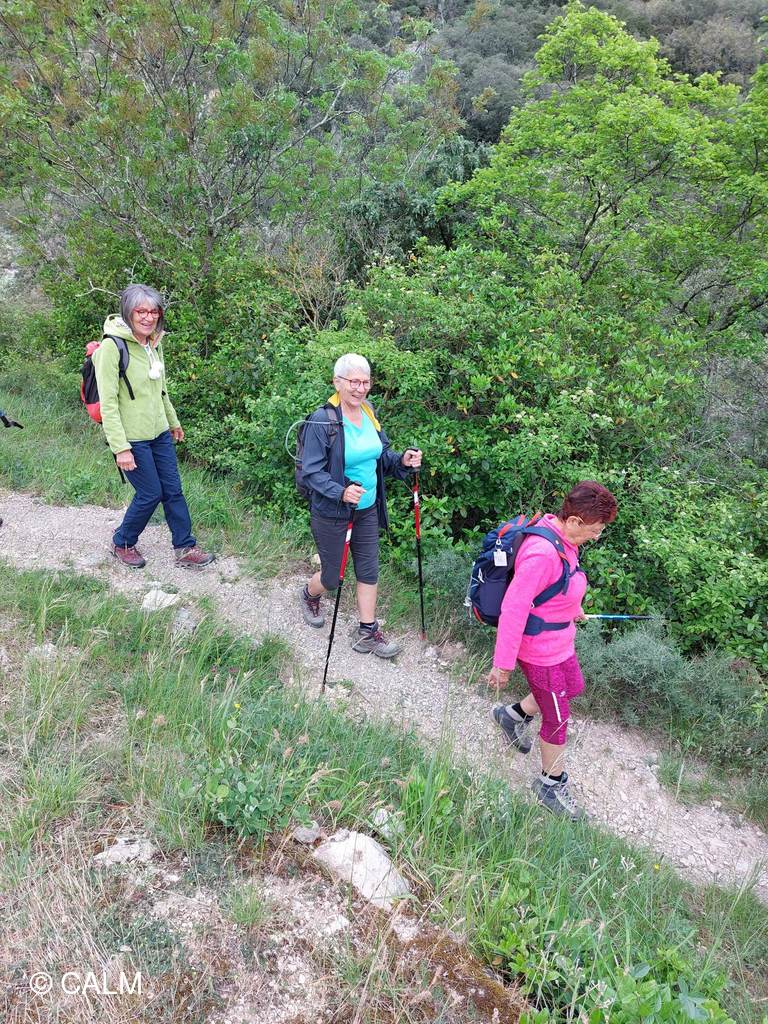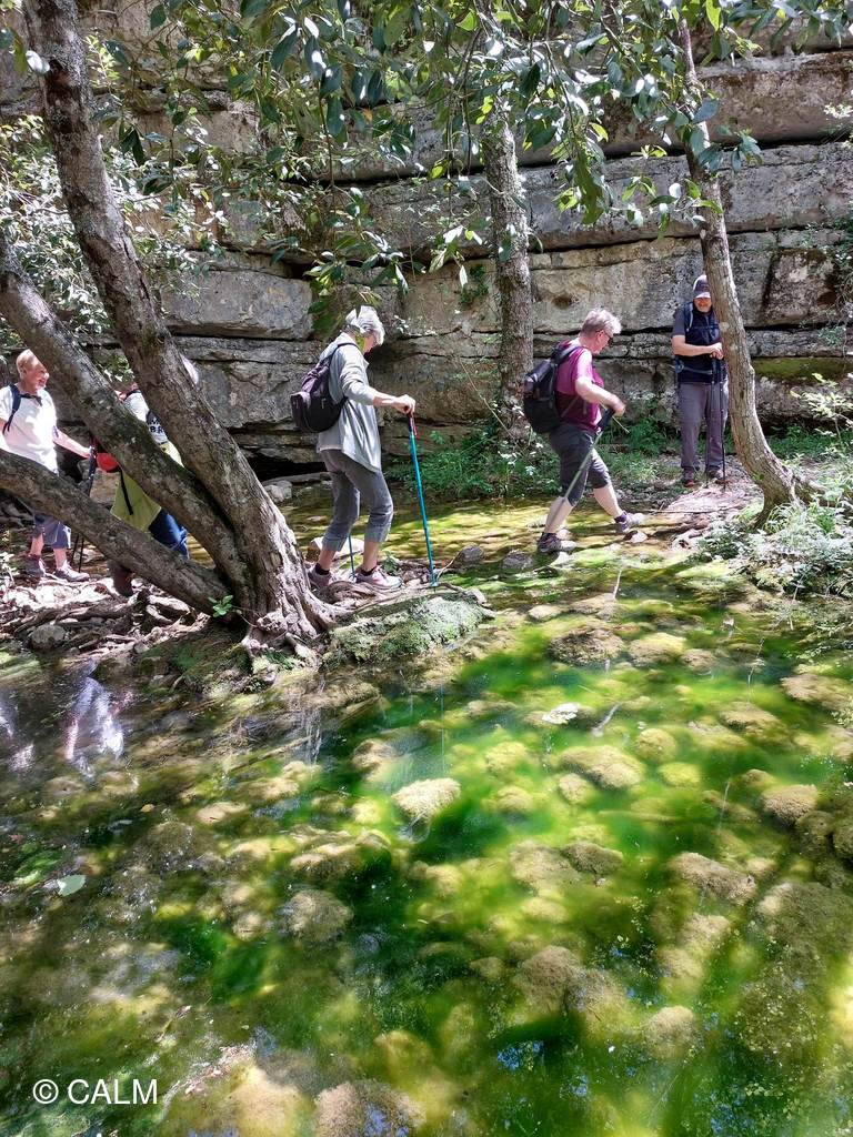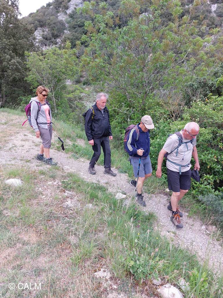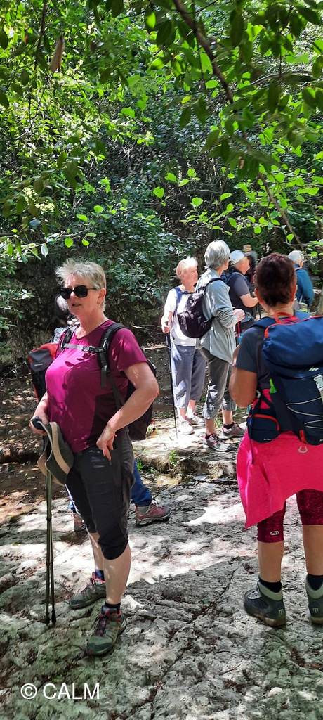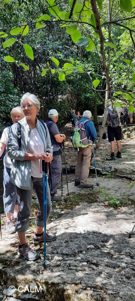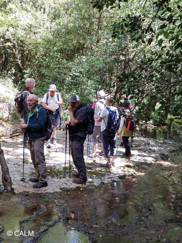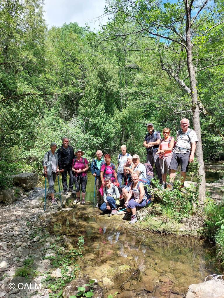 Nous étions 14 randonneurs ce jeudi 11-05 pour une ballade de 12km au départ de Banne sous un ciel nuageux. Après avoir traversé le village nous descendons vers la vallée du Granzon et passons devant une distillerie qui produit des huiles essentielles de plantes aromatiques. Arrivés dans le lit du ruisseau, nous le traversons sans peine car il y a très peu d'eau mais suffisamment pour rendre cette rando agréable. Un simple aller retour pour admirer une source qui sort d'une petite grotte. Nous poursuivons notre marche en longeant le Granzon sur un monotrace entrecoupé de sous bois superbes et de clairières ensoleillées où l'on pouvait apprécier la nature en fleur, le chant des oiseaux ,le coassement des grenouilles et le clapotis de l'eau. Vers 11h45 nous avons pique-niqué au bord du ruisseau dans un endroit abrité et lumineux. Après cette pause nous arrivons devant un abri en pierre avec voute à l’intérieur et juste à côté nous passons par une porte garnie d'un magnifique linteau en pierre qui nous mène sur un gour inattendu et le tout dans un décor de sous bois propice à une photo de groupe. Nous traversons une fois de plus le ruisseau pour voir une résurgence "la source du Vedel" tout aussi pittoresque. Une bonne montée nous attends pour atteindre le plateau qui nous amène tranquillement vers les voitures.