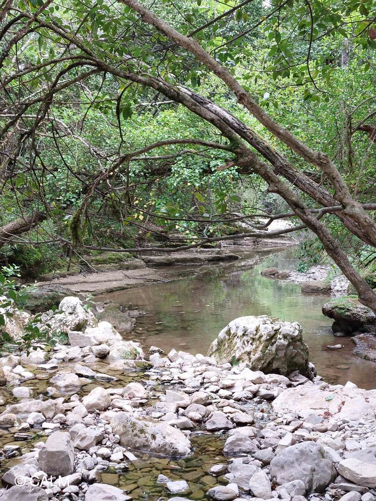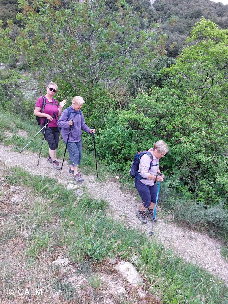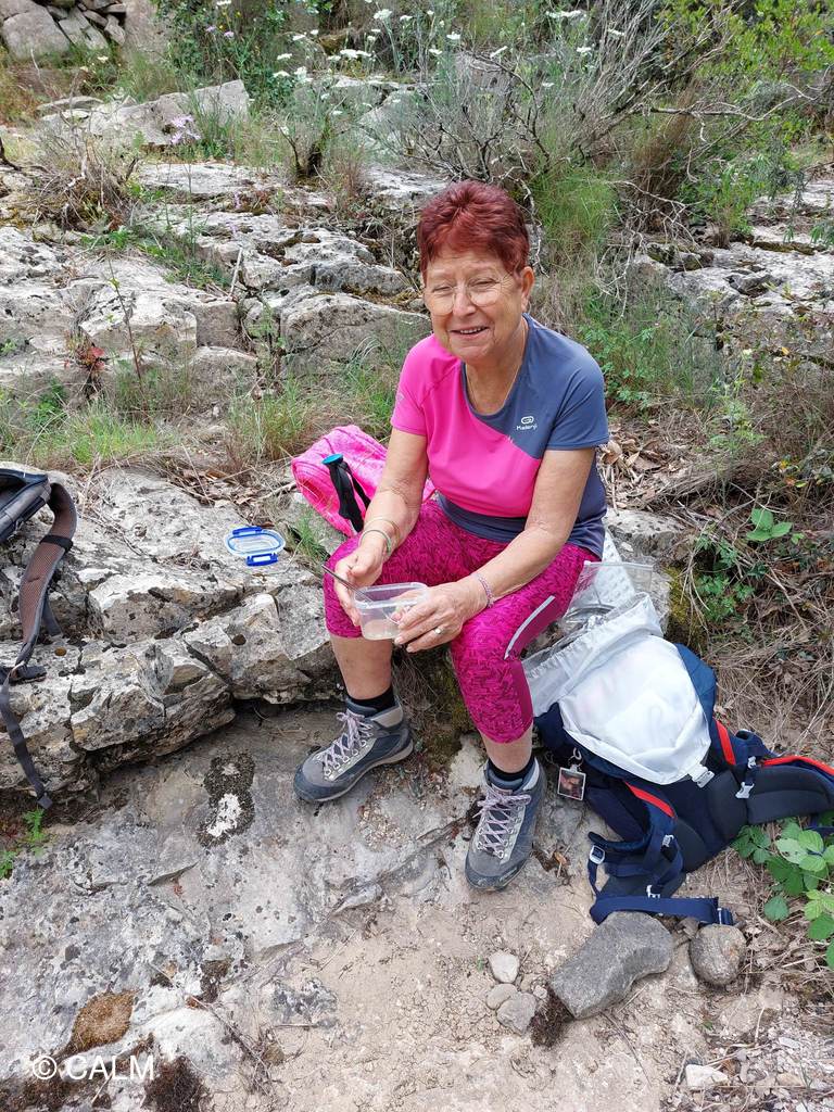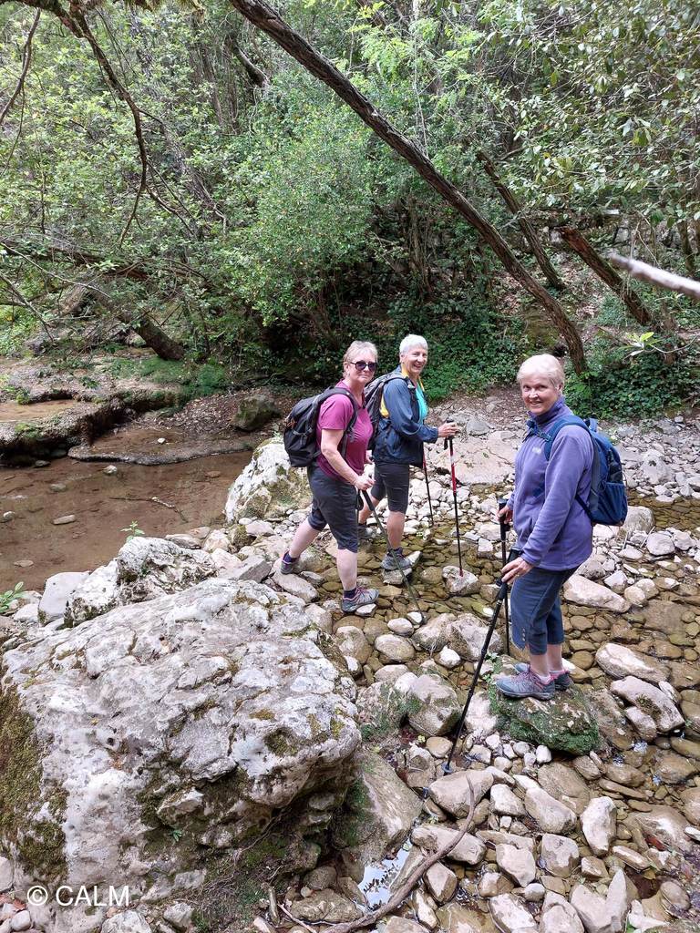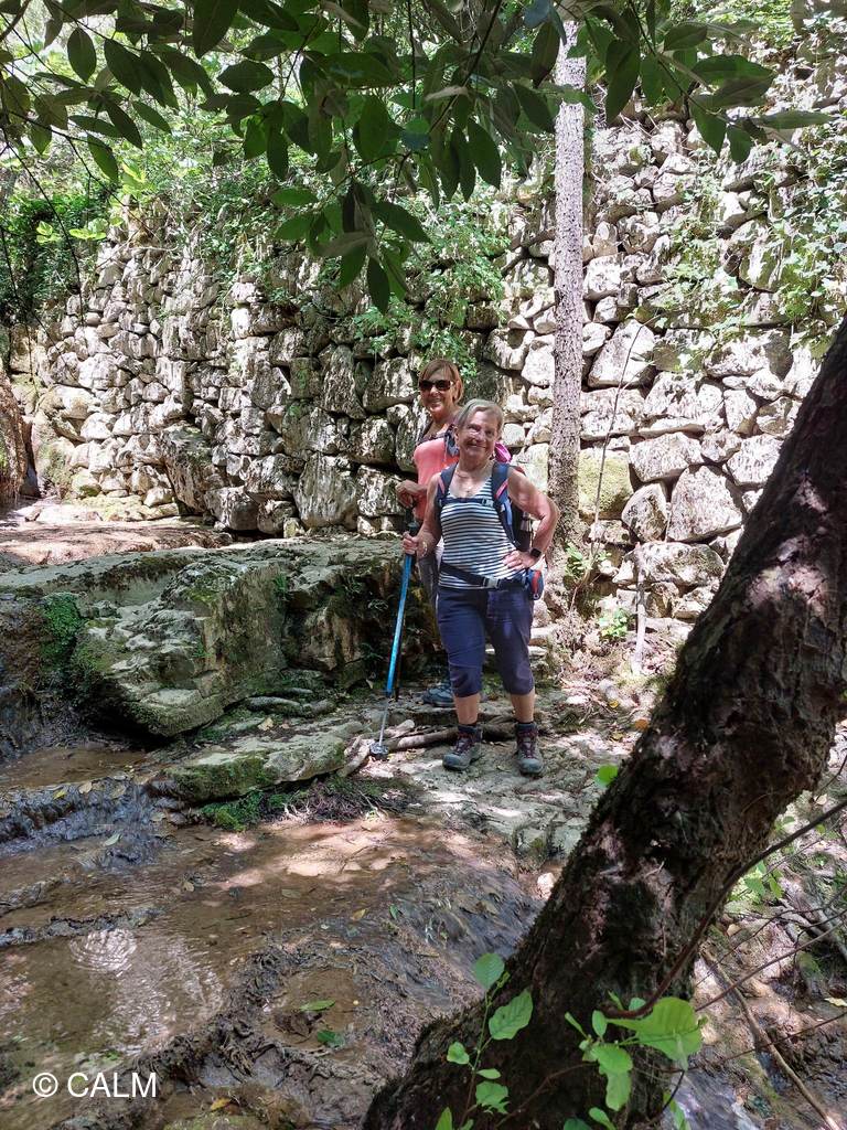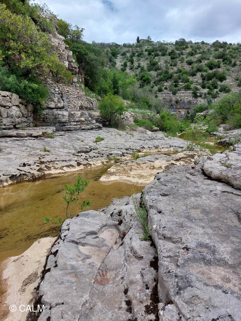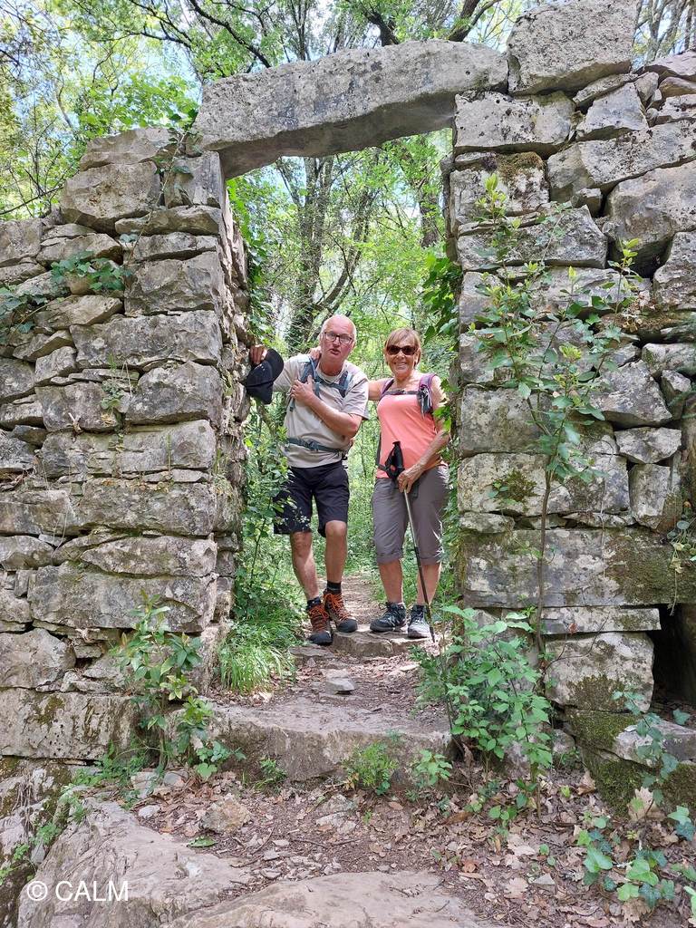 Nous étions 14 randonneurs ce jeudi 11-05 pour une ballade de 12km au départ de Banne sous un ciel nuageux. Après avoir traversé le village nous descendons vers la vallée du Granzon et passons devant une distillerie qui produit des huiles essentielles de plantes aromatiques. Arrivés dans le lit du ruisseau, nous le traversons sans peine car il y a très peu d'eau mais suffisamment pour rendre cette rando agréable. Un simple aller retour pour admirer une source qui sort d'une petite grotte. Nous poursuivons notre marche en longeant le Granzon sur un monotrace entrecoupé de sous bois superbes et de clairières ensoleillées où l'on pouvait apprécier la nature en fleur, le chant des oiseaux ,le coassement des grenouilles et le clapotis de l'eau. Vers 11h45 nous avons pique-niqué au bord du ruisseau dans un endroit abrité et lumineux. Après cette pause nous arrivons devant un abri en pierre avec voute à l’intérieur et juste à côté nous passons par une porte garnie d'un magnifique linteau en pierre qui nous mène sur un gour inattendu et le tout dans un décor de sous bois propice à une photo de groupe. Nous traversons une fois de plus le ruisseau pour voir une résurgence "la source du Vedel" tout aussi pittoresque. Une bonne montée nous attends pour atteindre le plateau qui nous amène tranquillement vers les voitures.