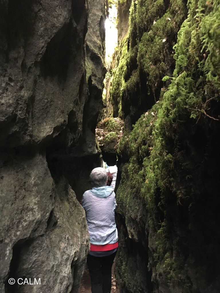 Des grottes, des rochers sculptés par le temps, des failles ( les canoles) aux parois vertigineuses, tapissées de mousse que nous parcourons à la queue leu leu et de biais tant le passage est étroit... Impressionnant et rare!!!