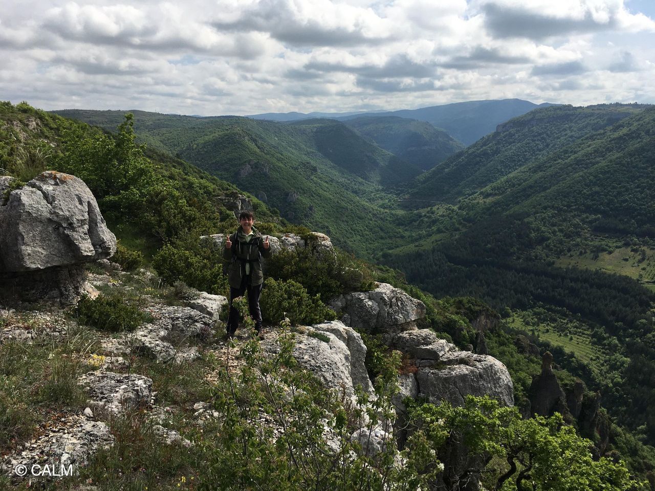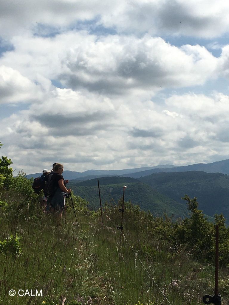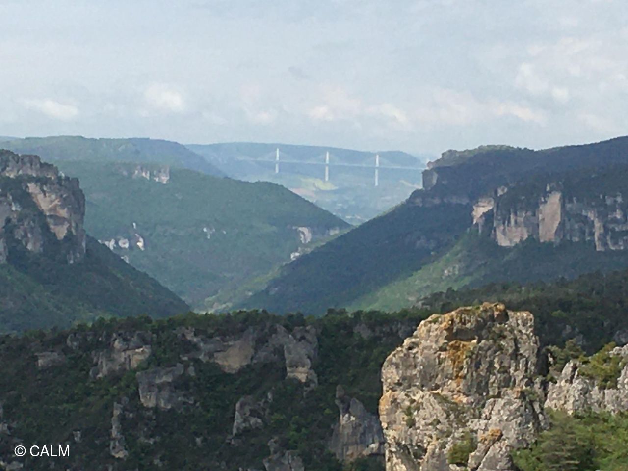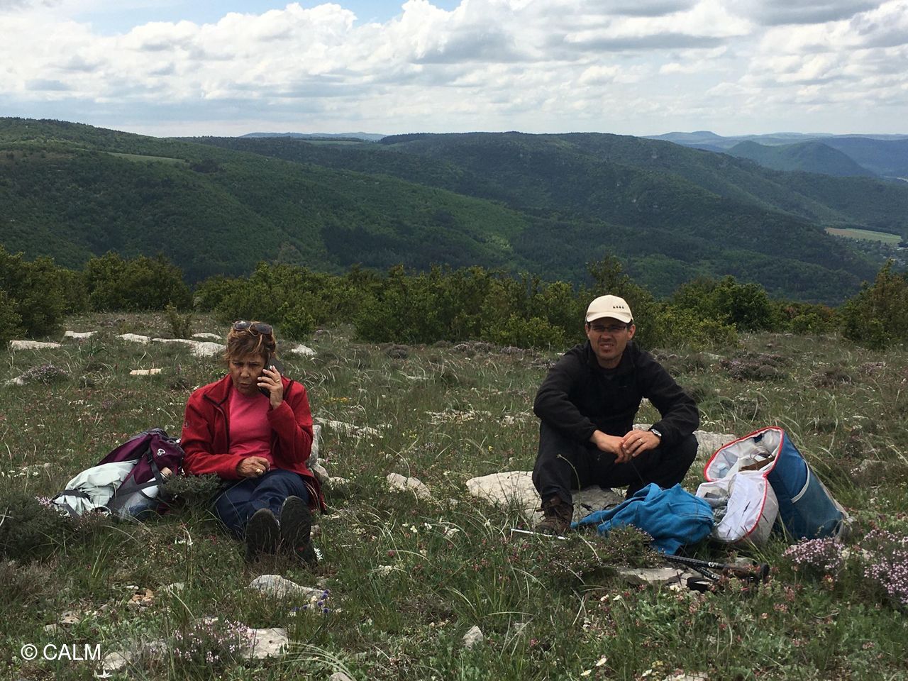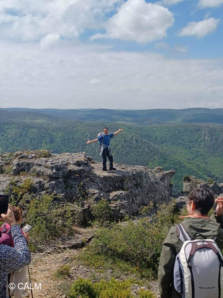 Dernière petite rando facile...Nous devons rentrer tôt car la pluie est annoncée à partir de 15h. Nous montons tranquillement jusqu'au plateau couvert de fleurs et pour seuls arbres des buis. C'est magnifique. Nous nous dirigeons vers le bord du plateau que nous longeons sur un tout petit sentier : à nos pieds les gorges de Trevezel et de l'autre côté de la vallée face à nous le Causse noir. Superbe vue.