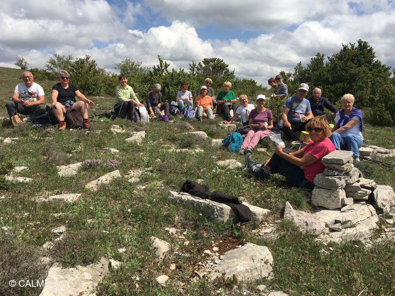 Début de la rando par le sentier botanique de Montméjan par lequel nous débutons l'ascension vers le Rajol et poursuivons vers Roquesaltes. Nous marchons dans une véritable ''mer'' de rochers. Chacun fait travailler son imagination pour interpréter leurs formes et les comparer à tel ou tel animal et autre personnage. Au loin le viaduc de Millau nous accompagne. Et toujours un parterre de fleurs variées et multicolores. La boucle se termine comme elle avait commencé par le sentier botanique de Montméjan, petit hameau de maisons caussenardes, en cours de restauration. Sur la route pour rentrer au centre, petite halte pour visiter le pittoresque petit village de St Veran.
