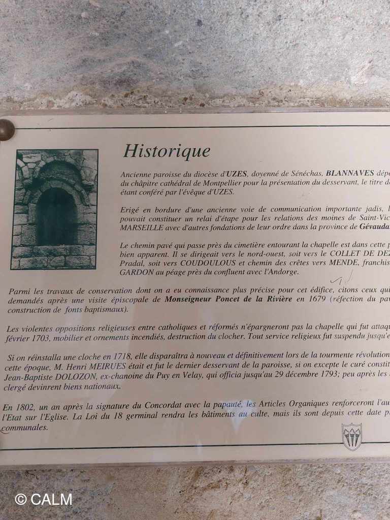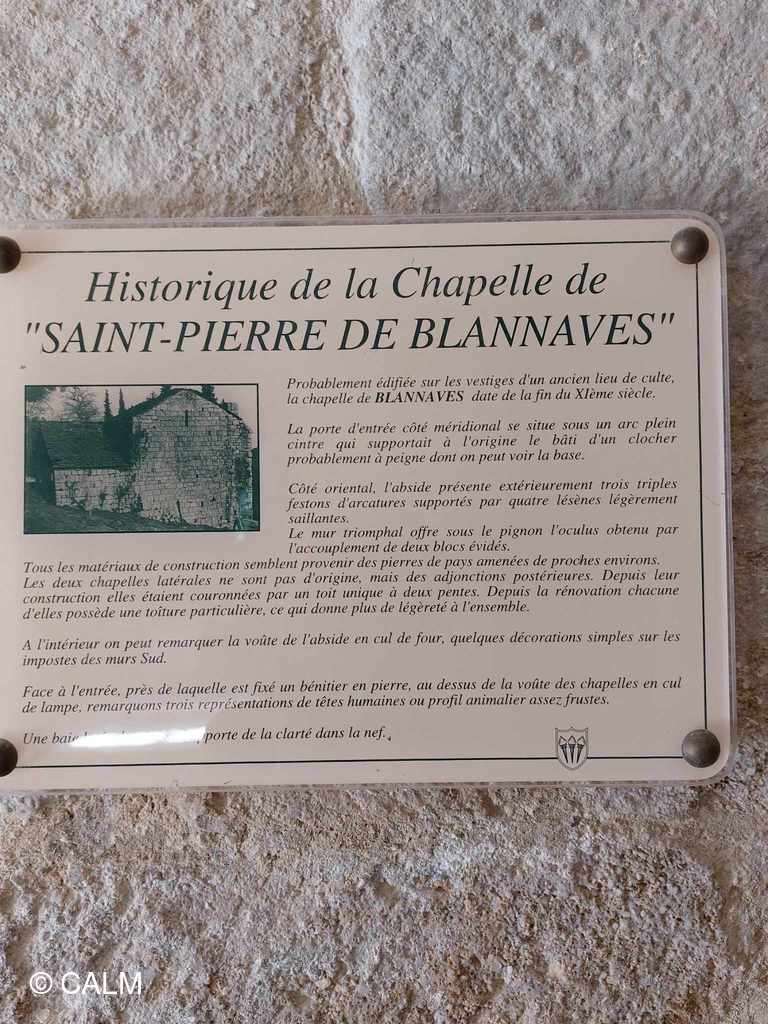 Le parcours ( plus court que prévu car une partie est désormais propriété privée accès interdit) débute par la visite de l'église romane St Pierre de Blannaves et se poursuit à travers les pins et les châtaigniers .