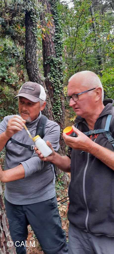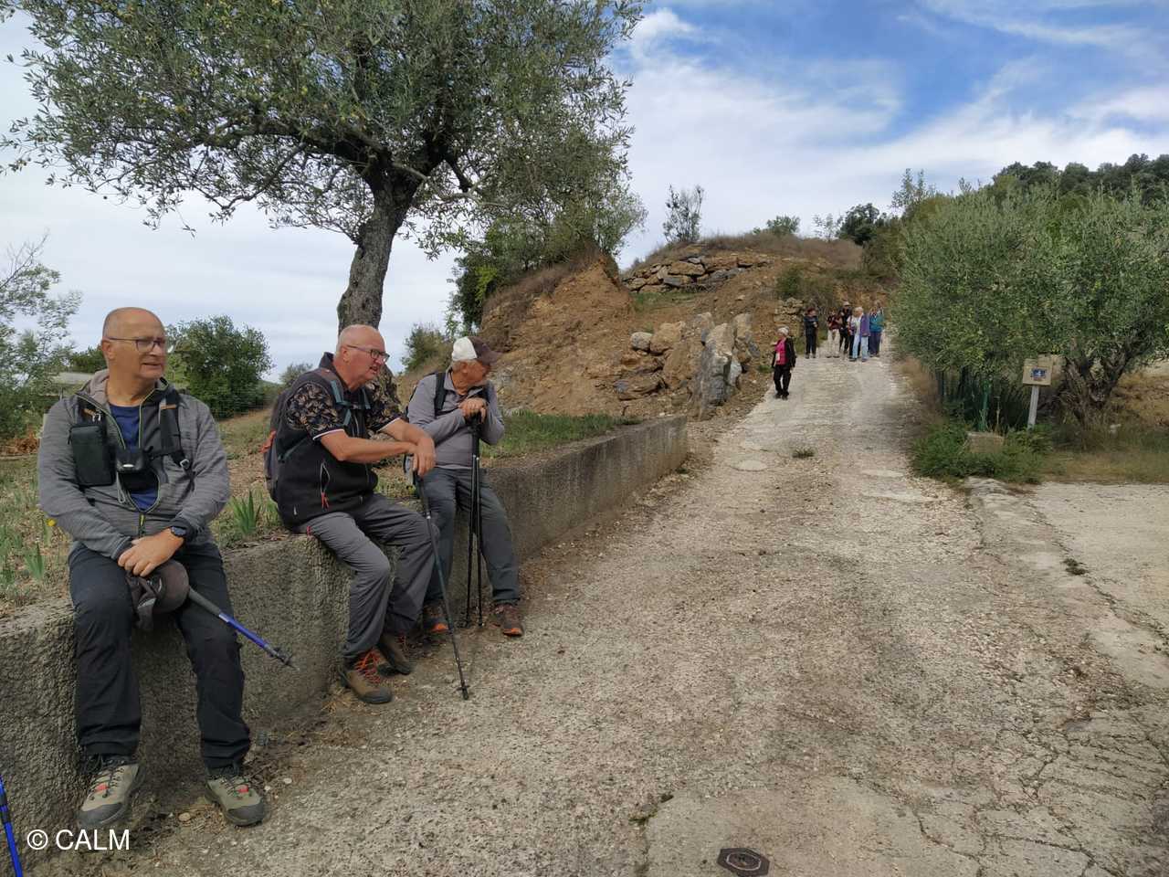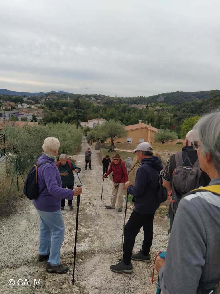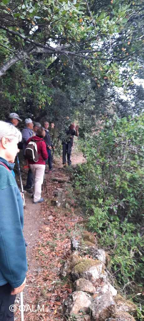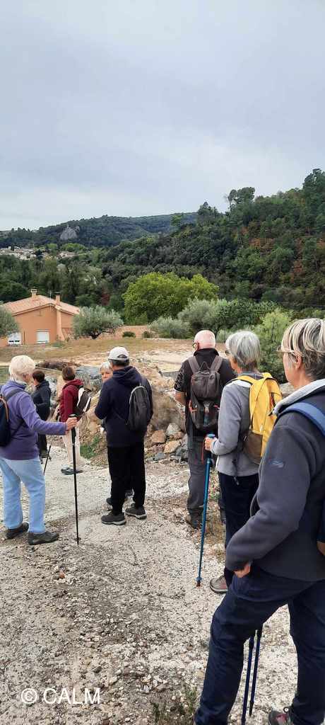 12 "randonneurs baliseurs" partis du poteau "boulevard du Nord" à St-Ambroix pour vérifier l'état des balises et des sentiers, jusqu'au poteau "mas des pommiers" à St-Brès , puis nous poursuivons en contrôlant la boucle "les remparts de Dieusse".