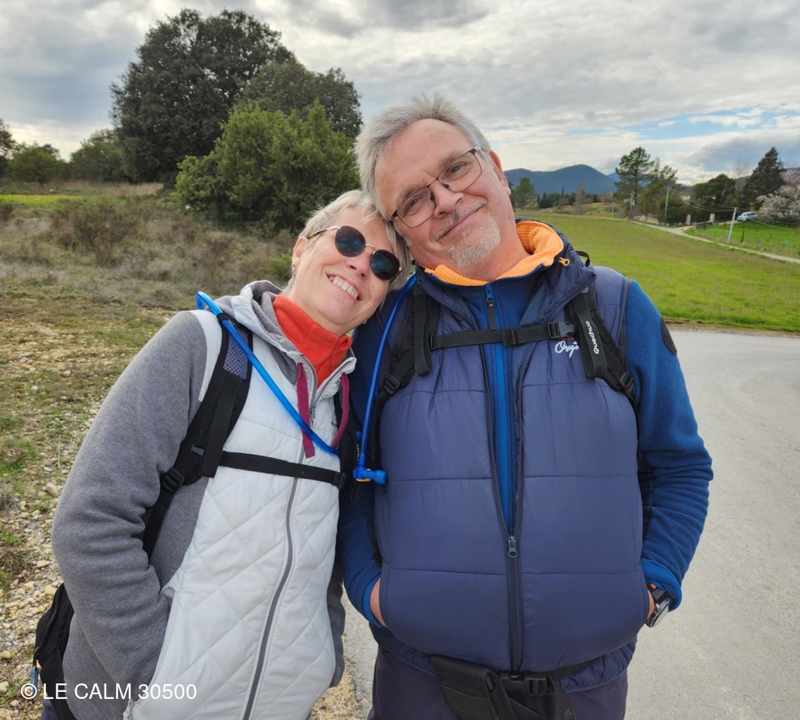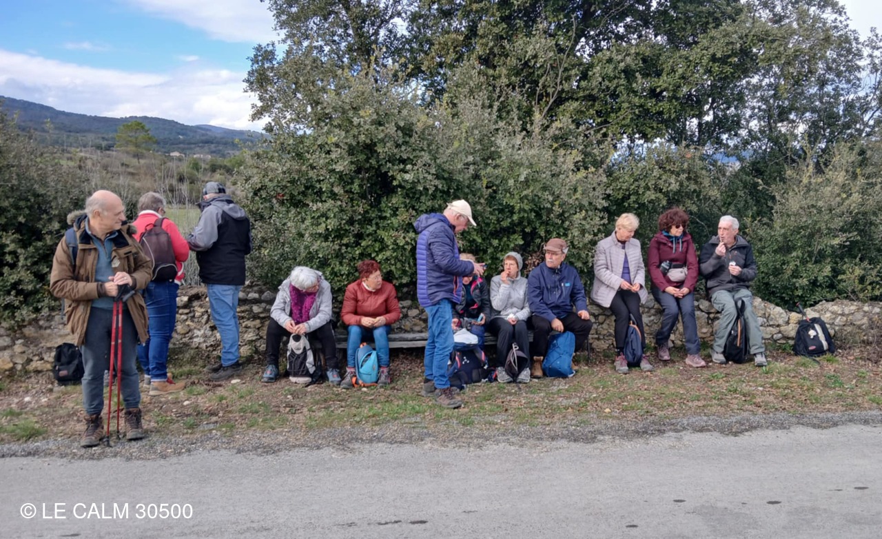 En arrivant vers Saint Julien de Cassagnas, nous rencontrons avec plaisir Françoise et Jacques qui font un bout de chemin avec nous. Arrêt pour notre goûter !!! surprise,