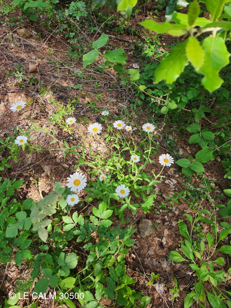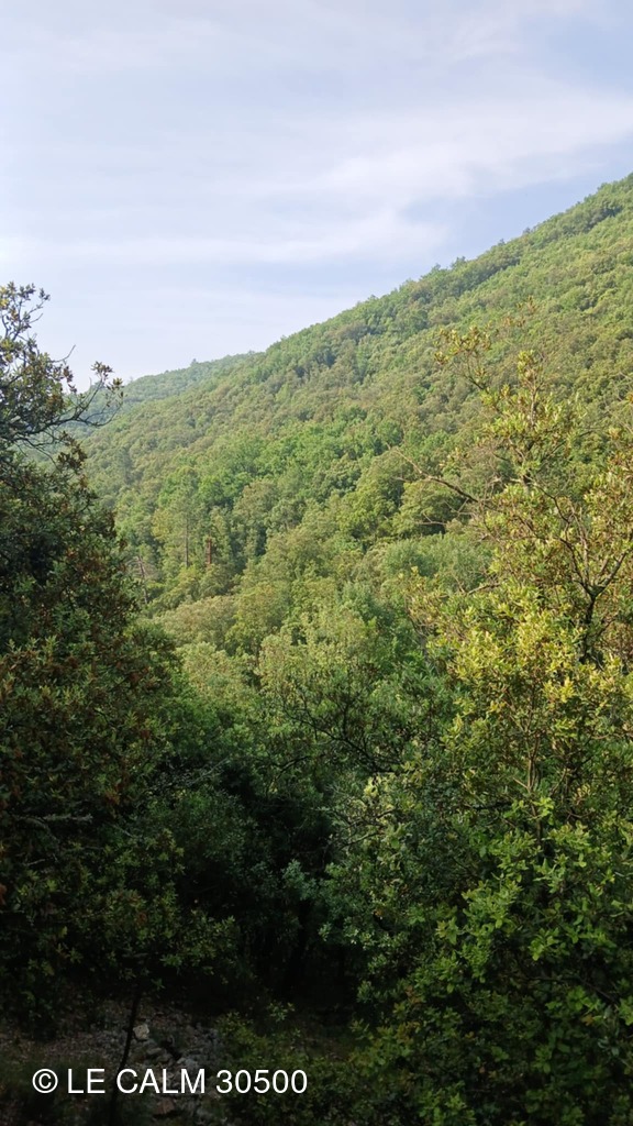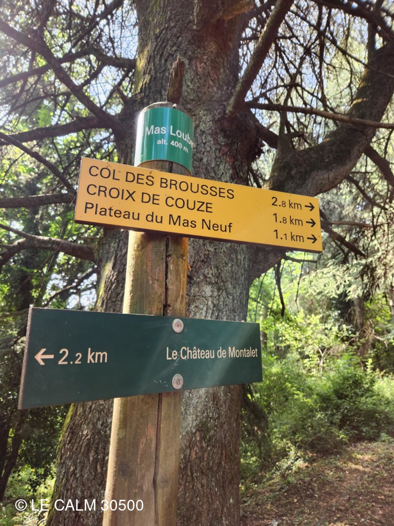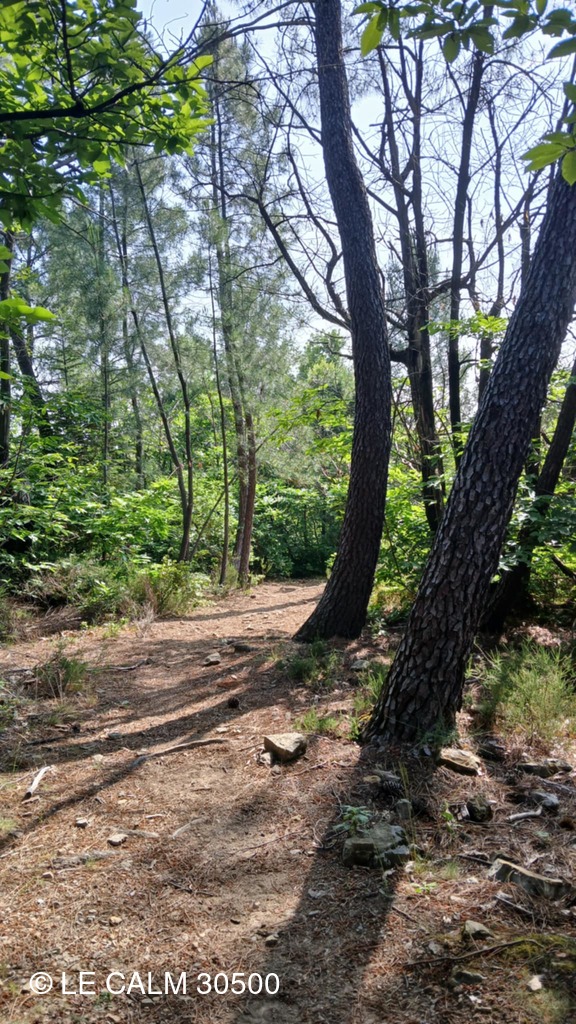 Le parcours se déroule à travers le bois de Banassac, à l'ombre bienvenue des chênes verts et blancs, des châtaigniers en fleurs, des pins, des cèdres ...