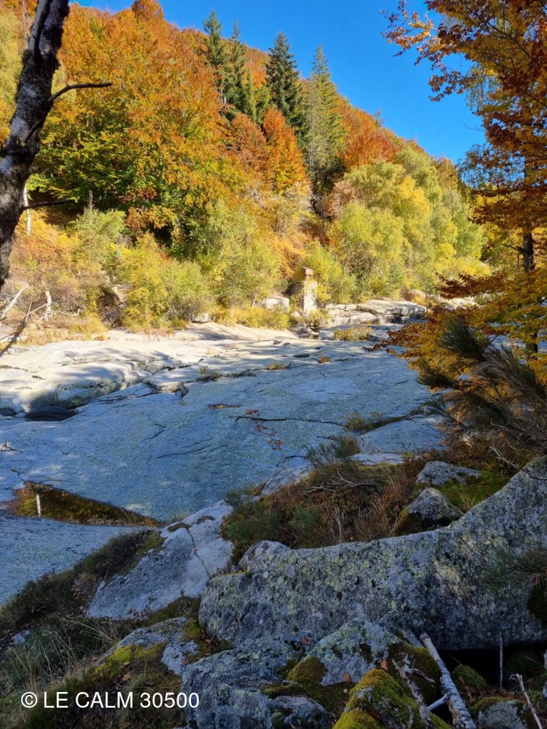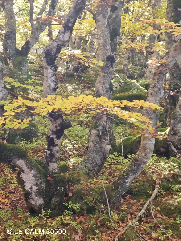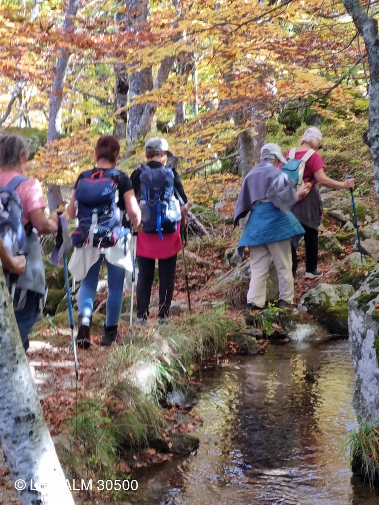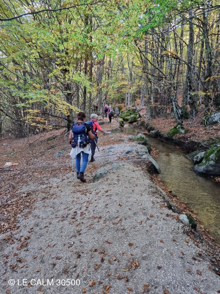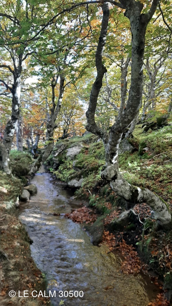 Nous suivons un béal qui serpente entre les rochers d'abord "à découvert " avec de magnifiques vues sur la montagne du Bouges et ses belles couleurs automnales puis dans une belle hêtraie.