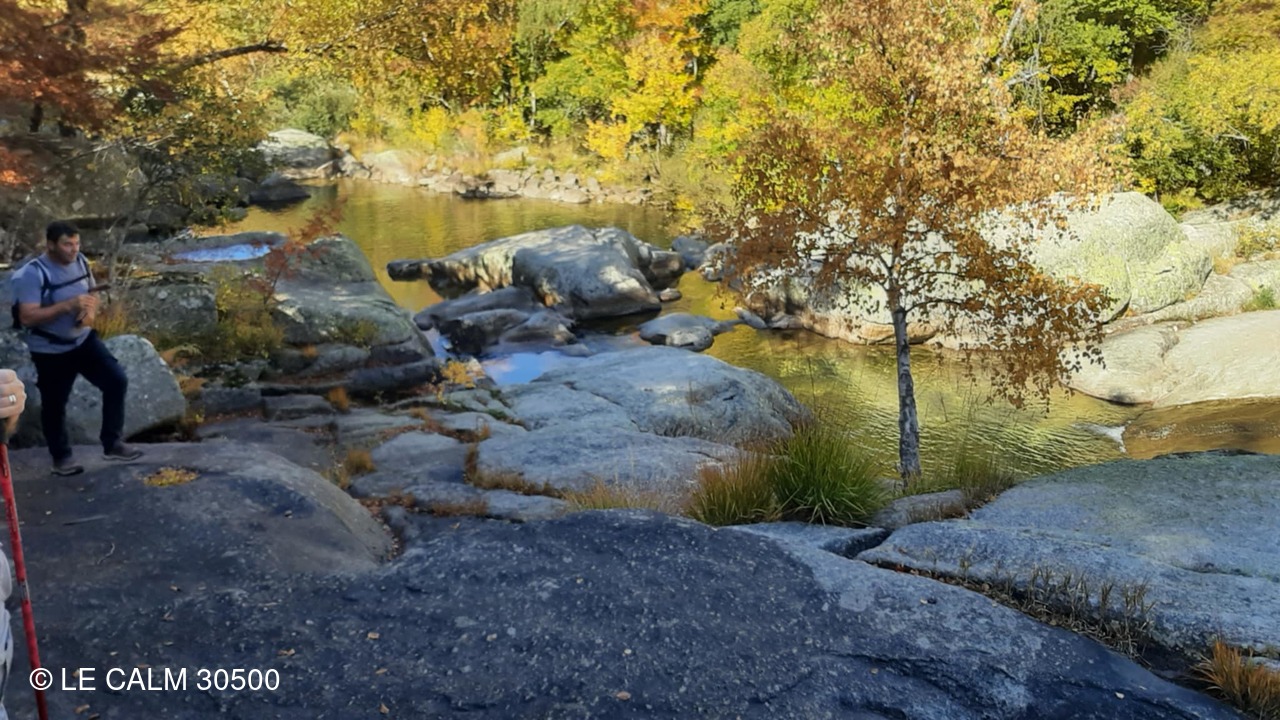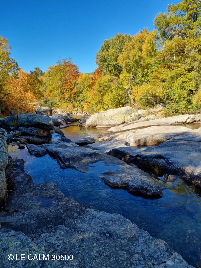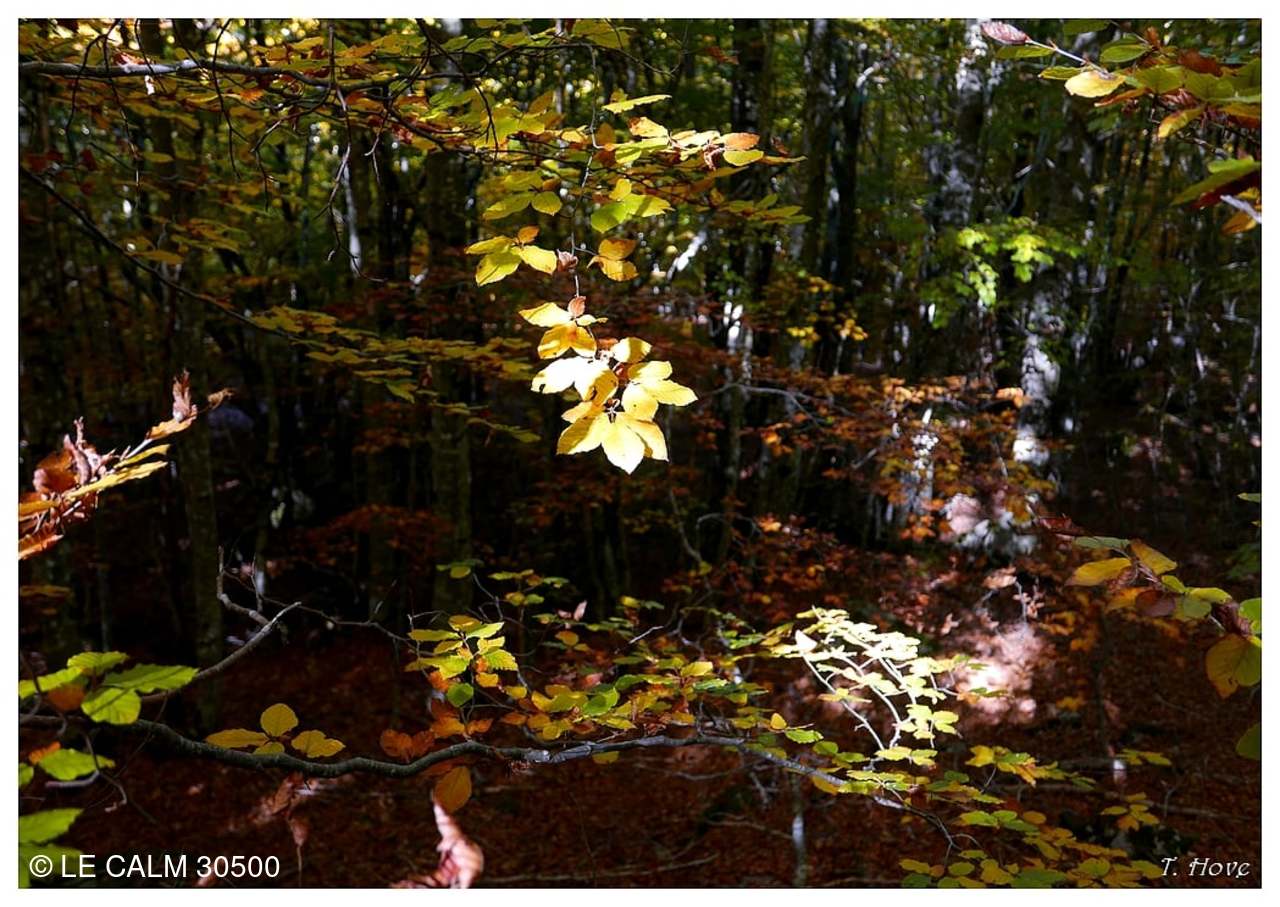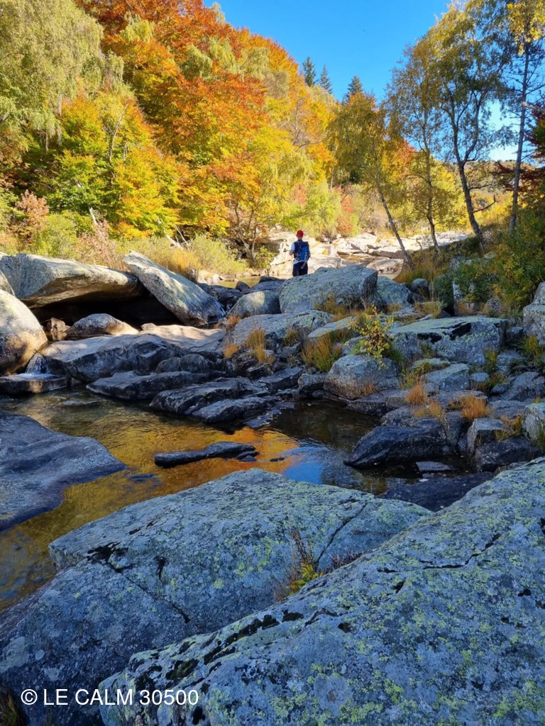 Nous suivons un béal qui serpente entre les rochers d'abord "à découvert " avec de magnifiques vues sur la montagne du Bouges et ses belles couleurs automnales puis dans une belle hêtraie.