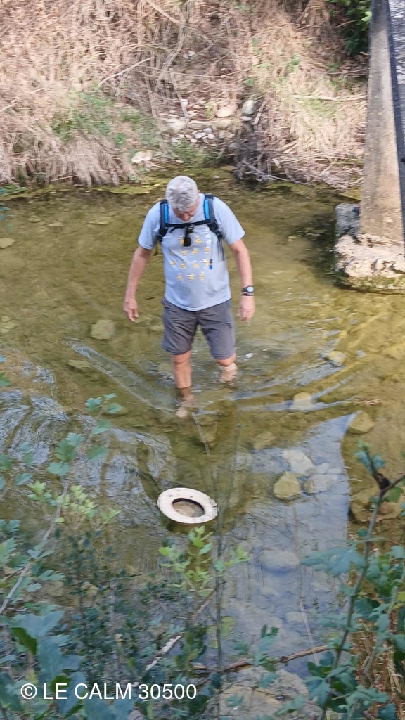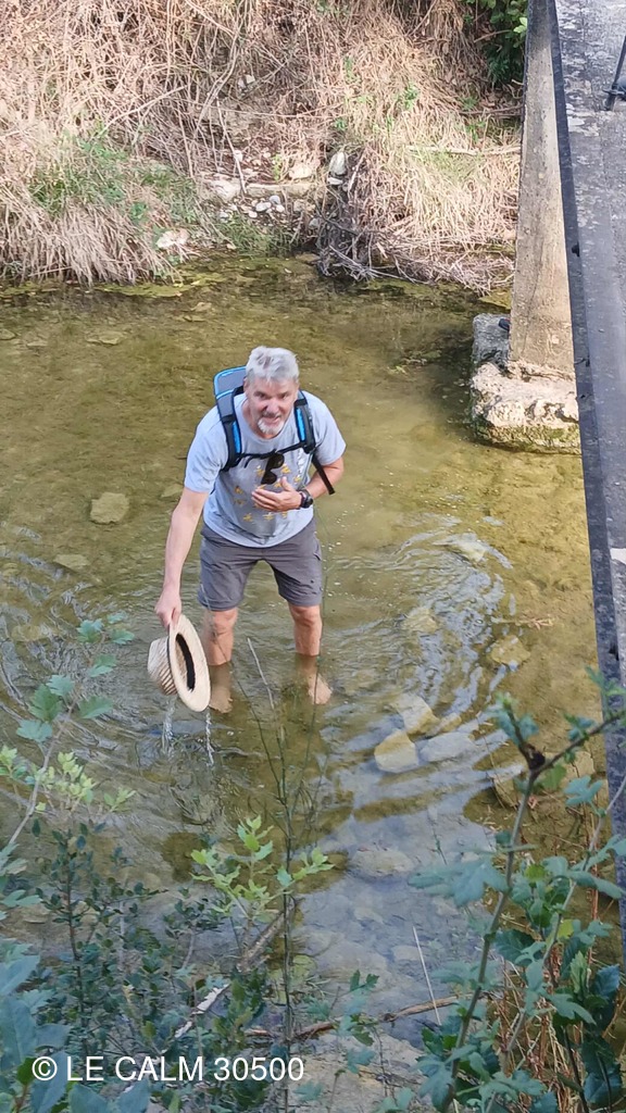 Puis nous la traversons en enjambant la passerelle, petit incident, José tombe son chapeau dans l'eau !!!!! voir les photos .